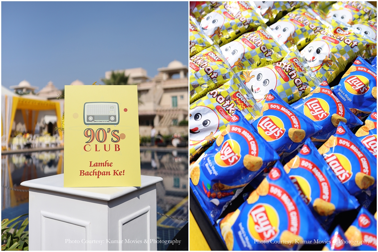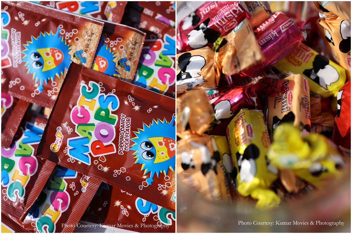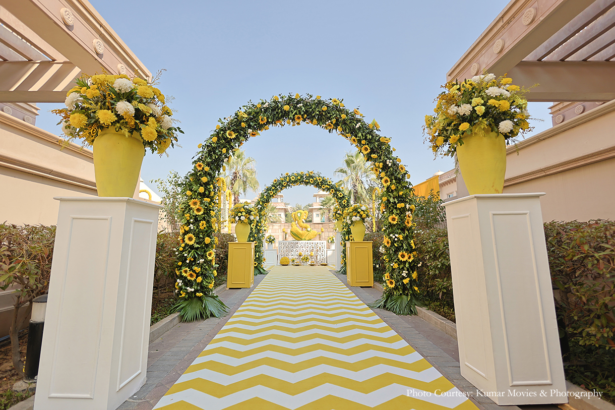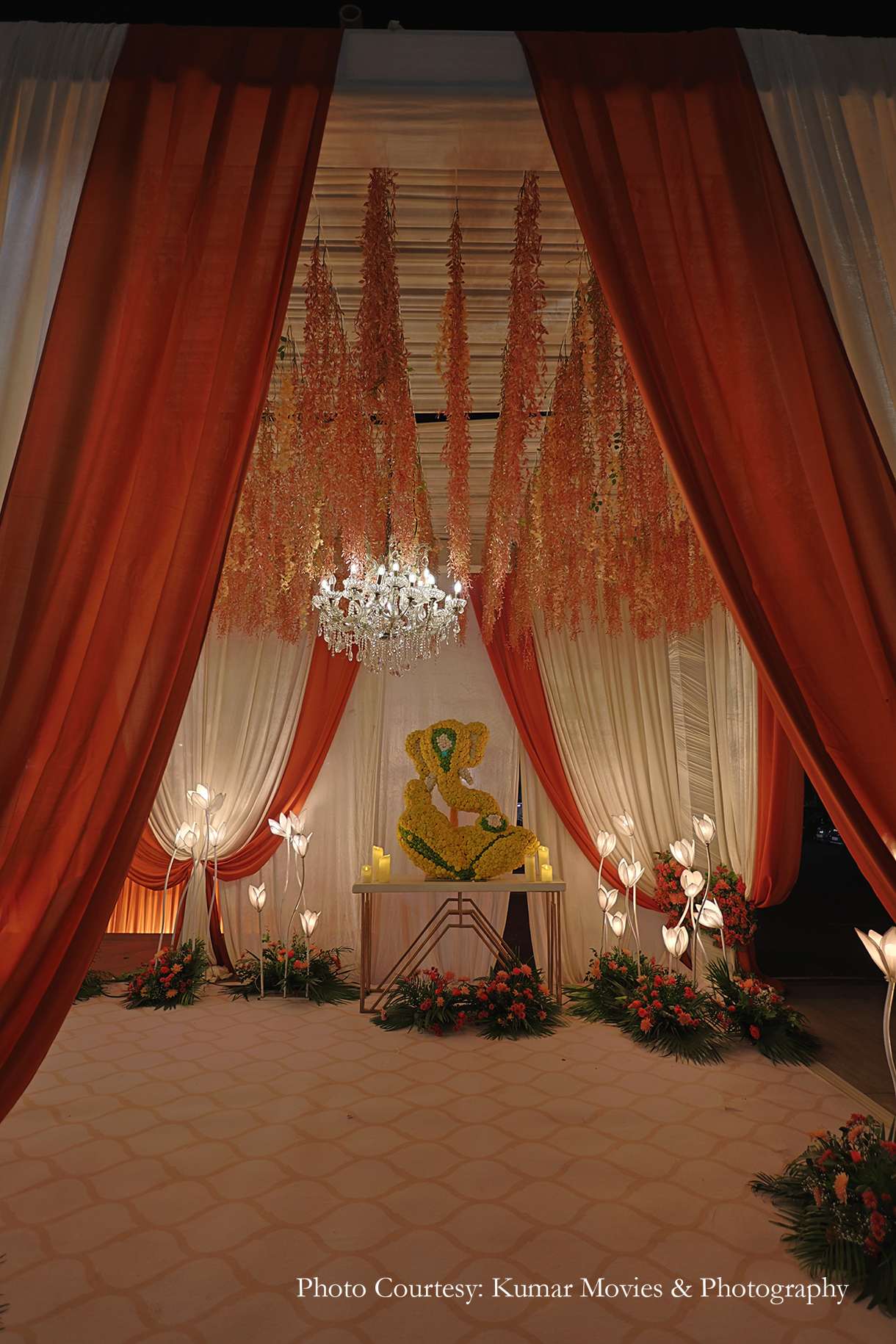 A heady mix of bright hues and fresh blooms, the haldi and mehndi was where everyone let their hair down and were at their playful best. Fresh orange, white, and yellow floral décor, nostalgic candy, and snacks put everyone in a cheerful mood. A picture-perfect flower shower with the bride seated in an urli ended the haldi celebration on a high note.