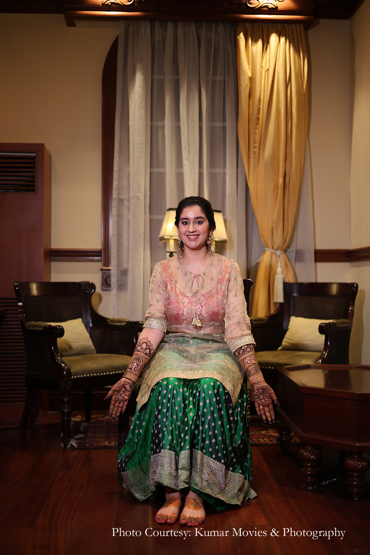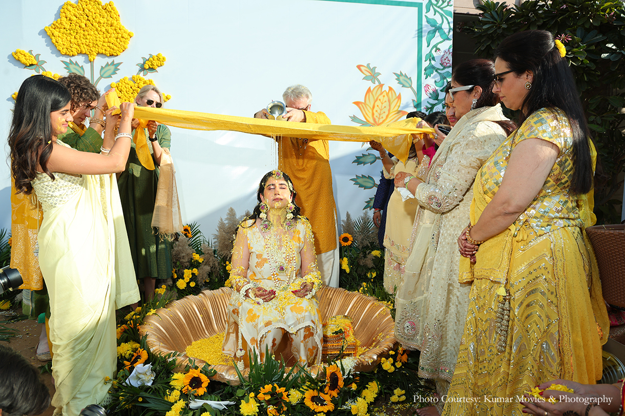 Bride’s Outfits: Liz Paul (Haldi and Mehndi), Vvani by Vani Vats (Sangeet), Sabyasachi Mukherjee (Reception), Nidhi Tholia (Farewell Brunch)