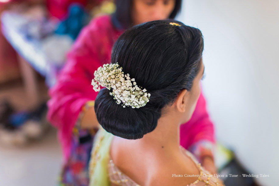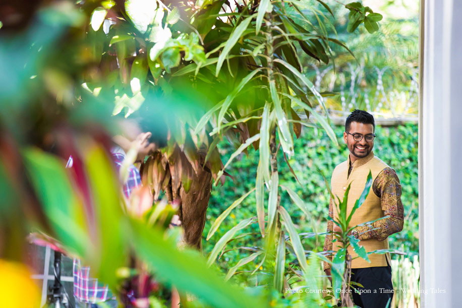 The following morning they two hosted the mandvo muhrat, a Gujarati ritual for to-be-weds. Yellow and white were the colors that dominated the decor and stages for the bride and groom were each set up for them to perform the ceremony on. Hiral was gorgeous in a white lehenga that she teamed with a green blouse while Hansil looked handsome in an orange kurta and floral bandi.