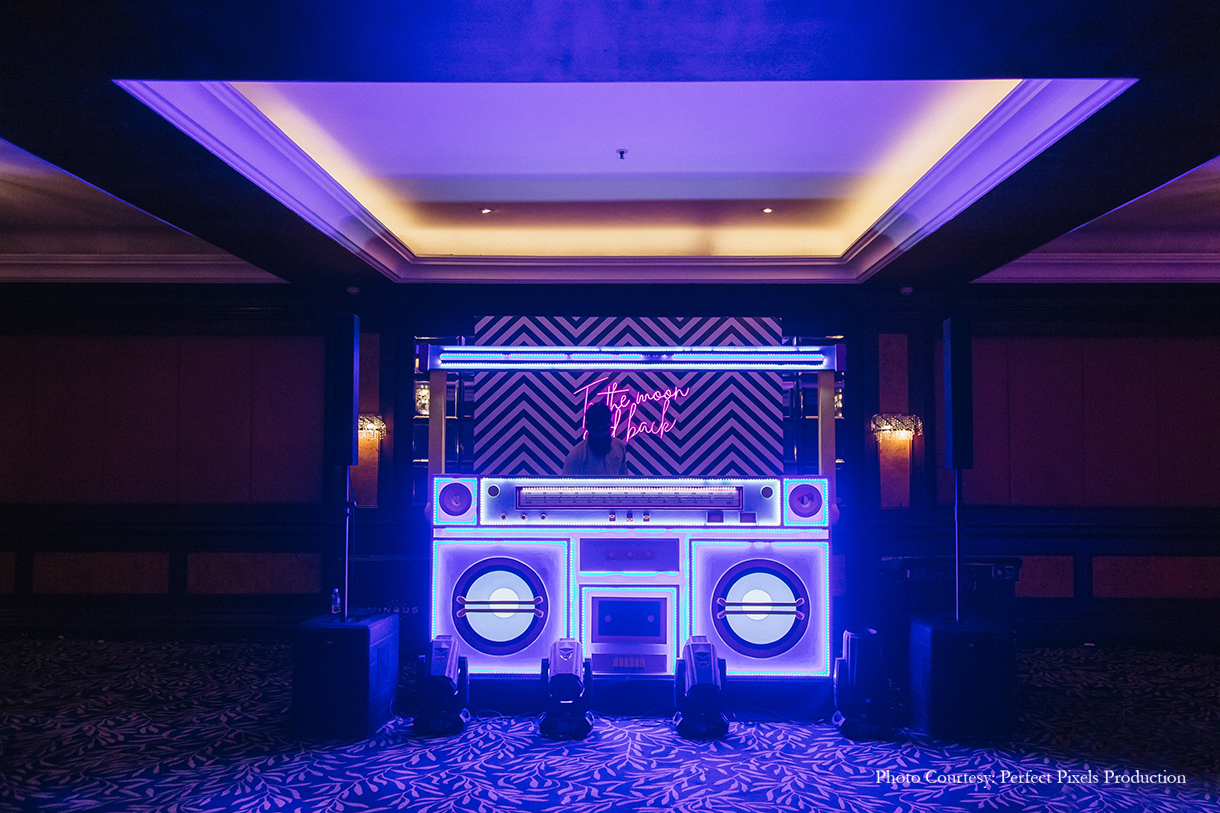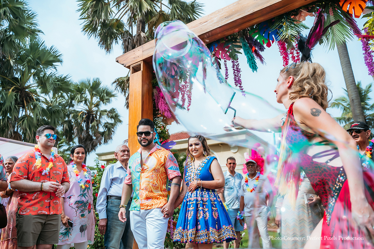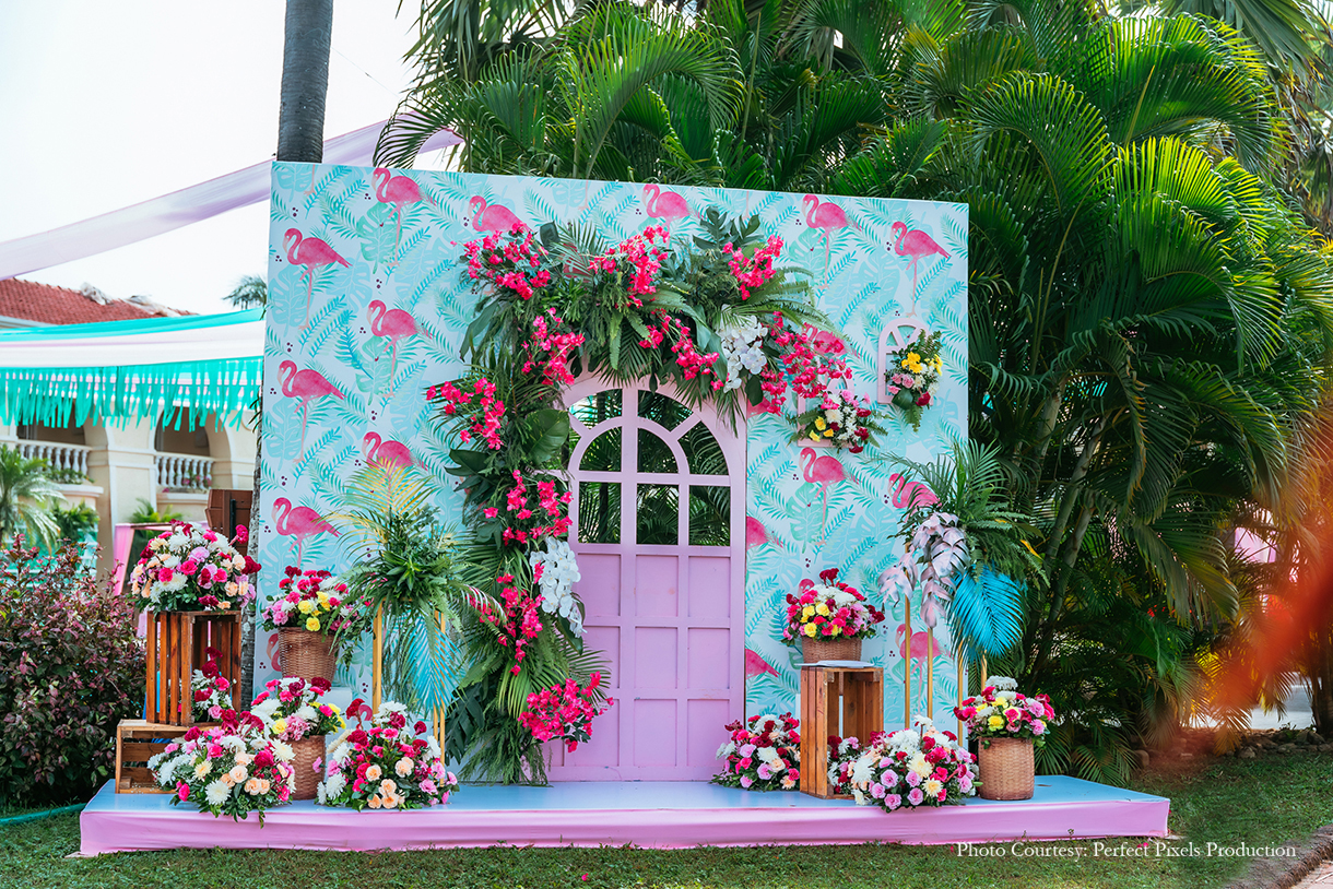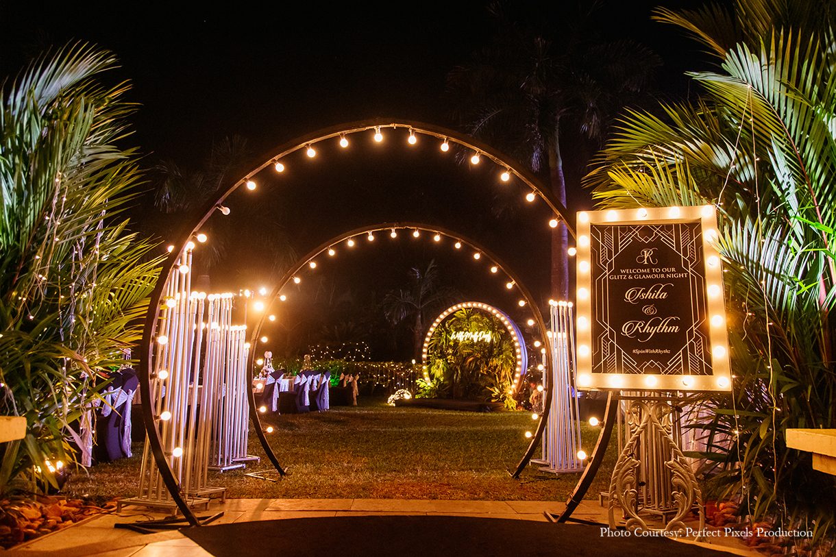 The celebrations began with a Bollywood-themed welcome dinner where everyone mingled freely. Decorated with tropical foliage and LED signages, the party was a glamorous one as everyone celebrated with a drink in hand. Plus, a dance floor and Bollywood music ensured all the guests shook a leg!