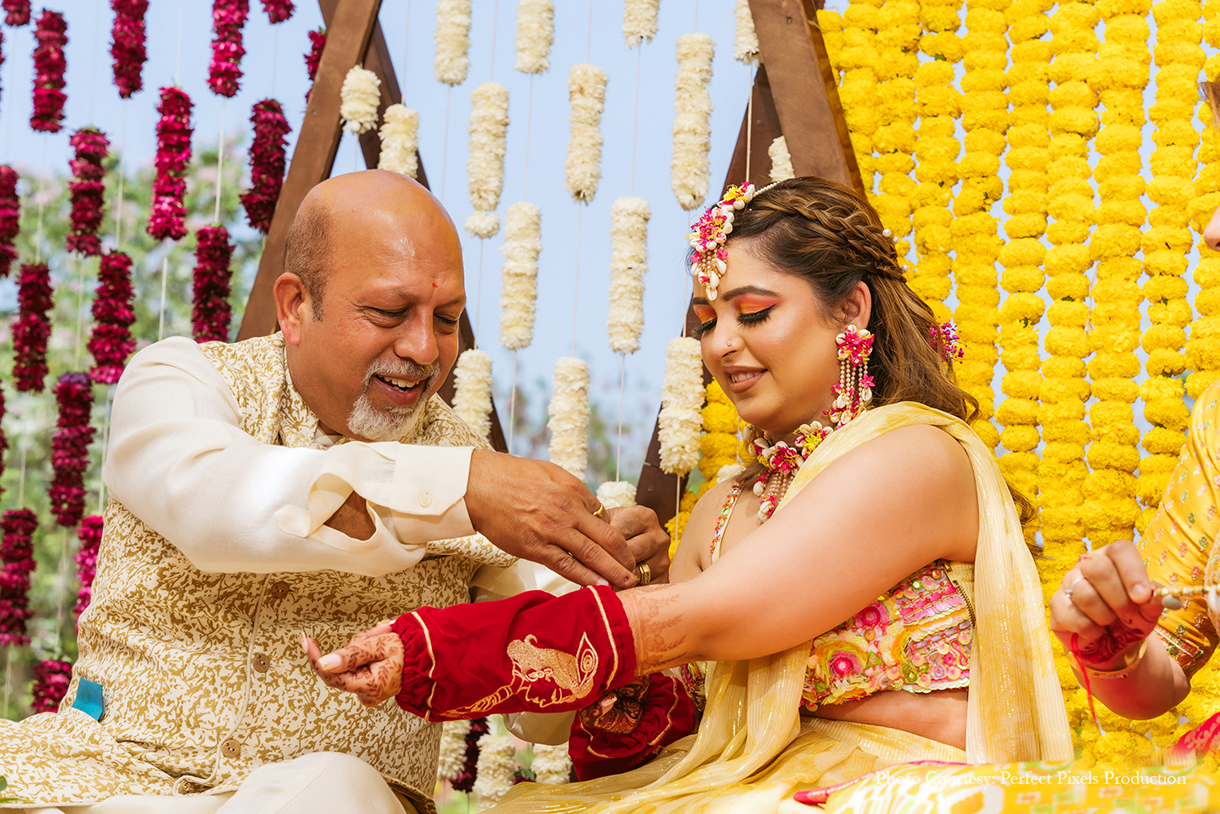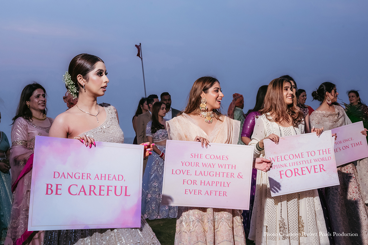 Bride’s Outfits: Dolly J (Welcome Dinner), Papa Don’t Preach (Pool Party), Liz Paul (Sangeet), Monika Nidhii (Haldi), Rimple Harpreet Narula (Wedding)
