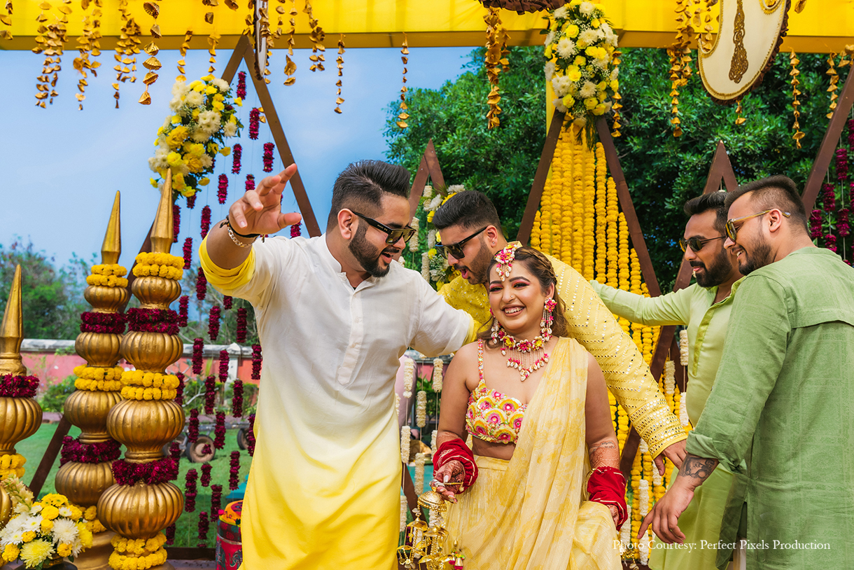 Ishita Dahuja, a fashion entrepreneur who founded the label Spiink and fitness consultant Rhythm Malhotra’s wedding in Goa was a traditional yet easy breezy celebration where the couple revelled freely with their loved ones. Spearheading their wedding planning was WeddingSutra Favorite – Exotic Goa Events who with their expertise ensured there were no hiccups as the couple took the plunge.