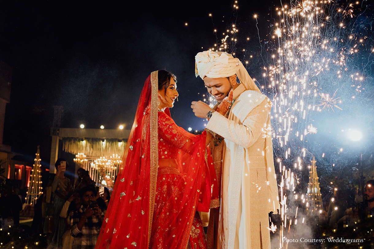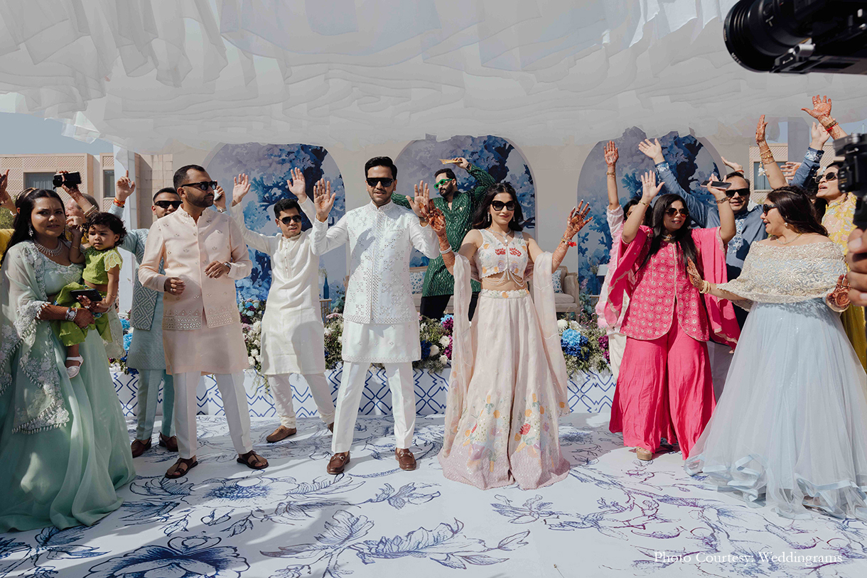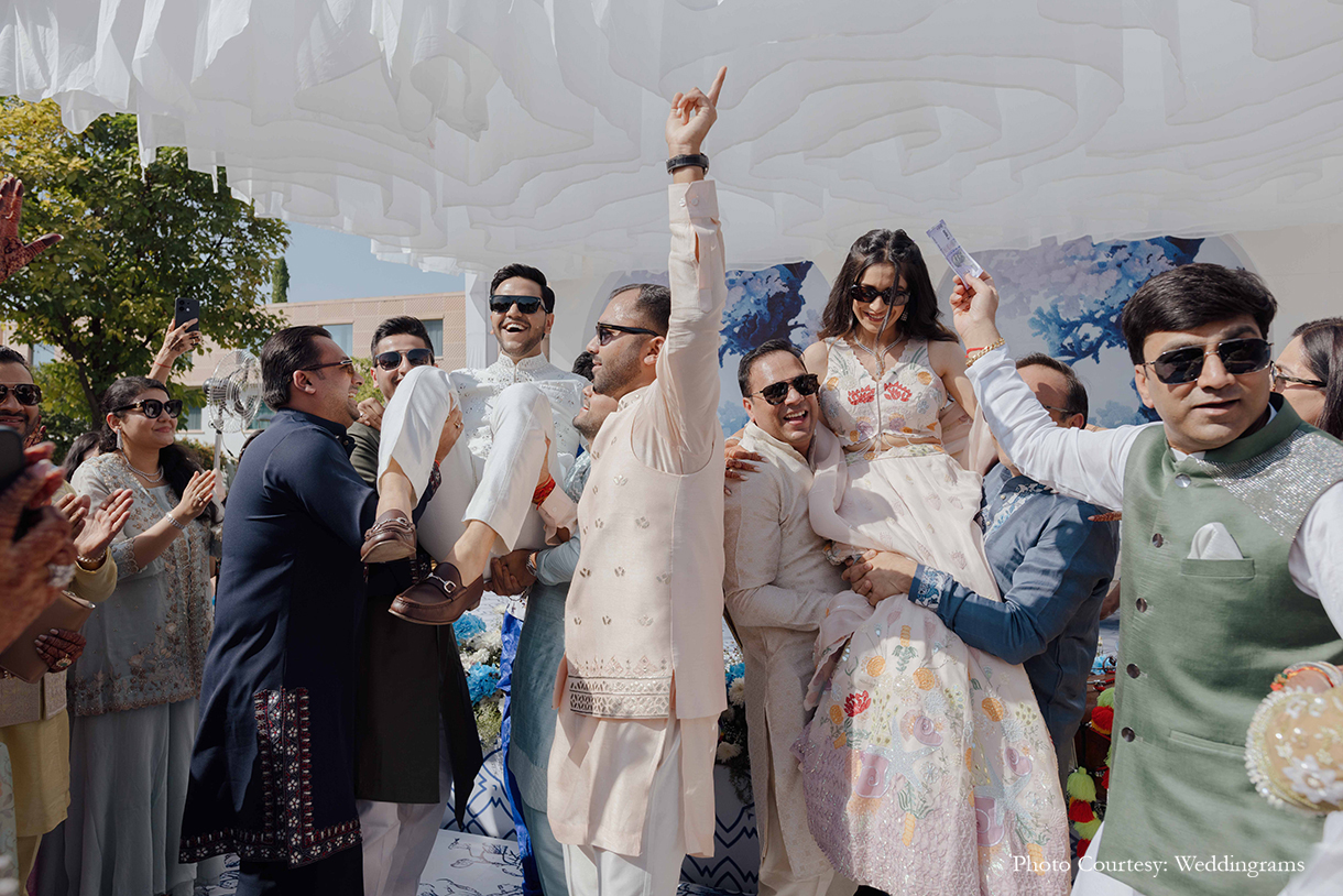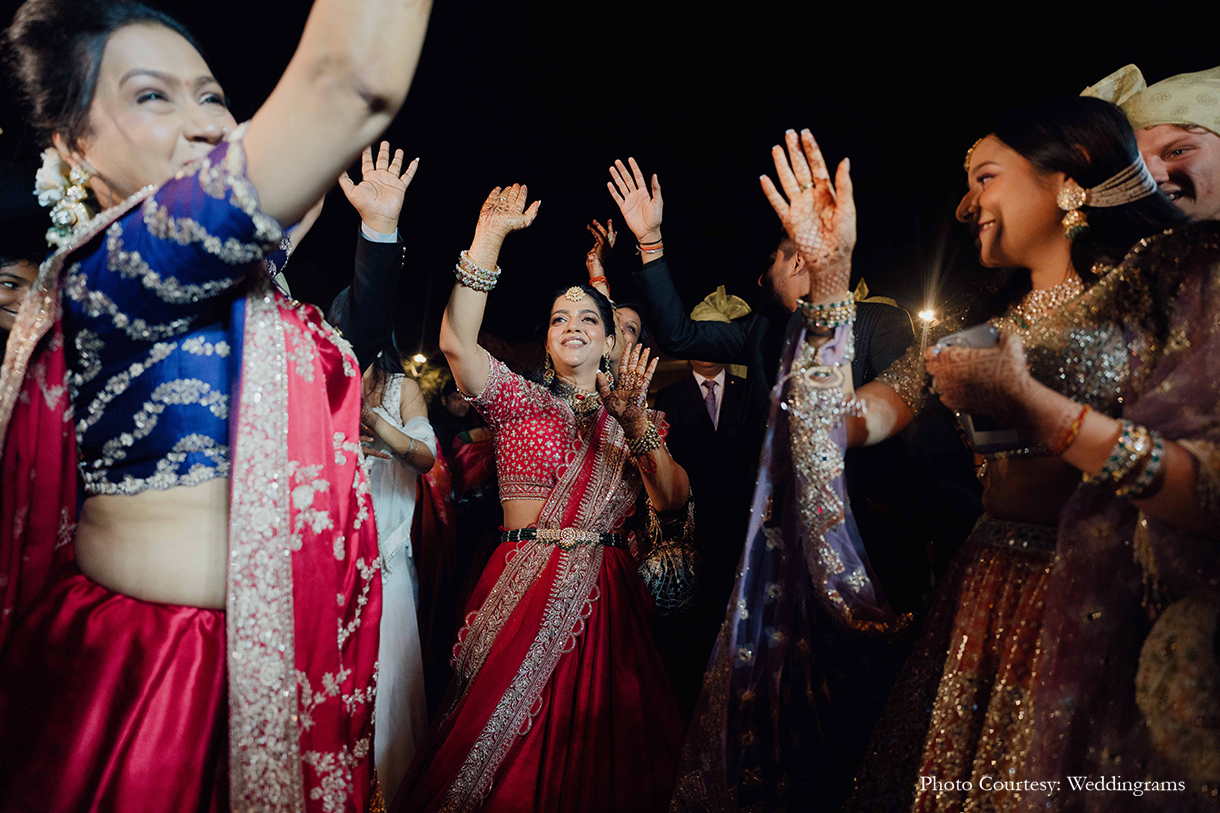 To capture their celebration in all its glory, they turned to the team of Weddingrams. Having witnessed their dedication during his sister’s wedding, where they braved the rain with mattresses to capture perfect shots, Naitik knew Weddingrams would be the perfect choice. The team exceeded the couple’s expectations, creating memories they’ll treasure forever.