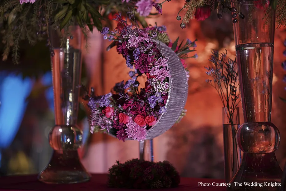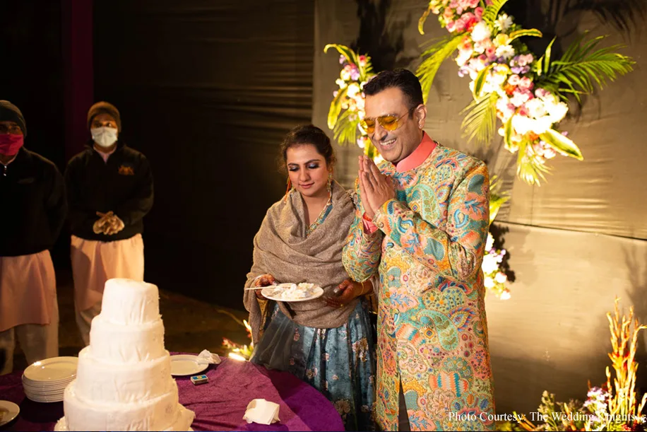 With an added celebration of the groom’s birthday, the next day saw a rousing cocktail function. Colorful decor, neon signages, riveting music and more, made the night memorable. However, the highlight of the evening was the surprise planned by Nitika and Siddharth of Weddings by Event Crafter, which was an emotional 3D projection of the groom’s pictures on the birthday cake, that won the bride’s heart and everyone else present.