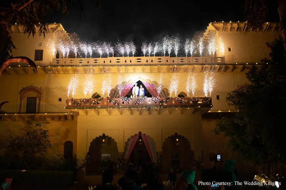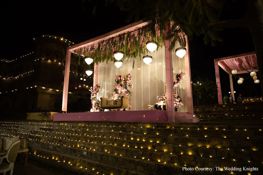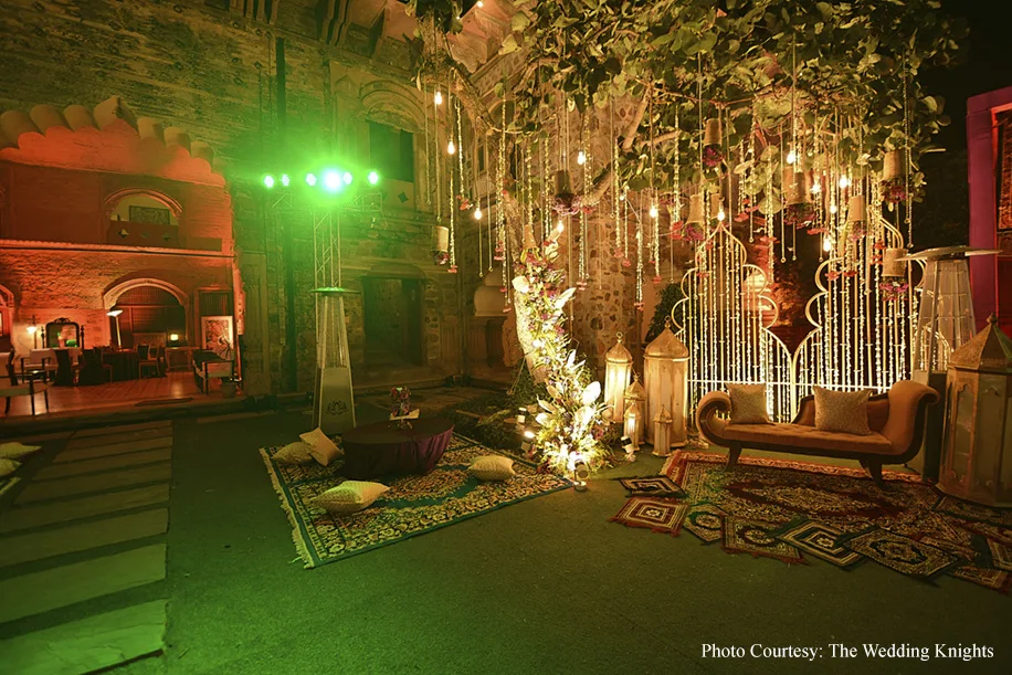 From a Moroccan-themed Mehndi to pastel pheras under the night sky, the wedding decor painted a vivid contrast against the fort’s rugged architecture.