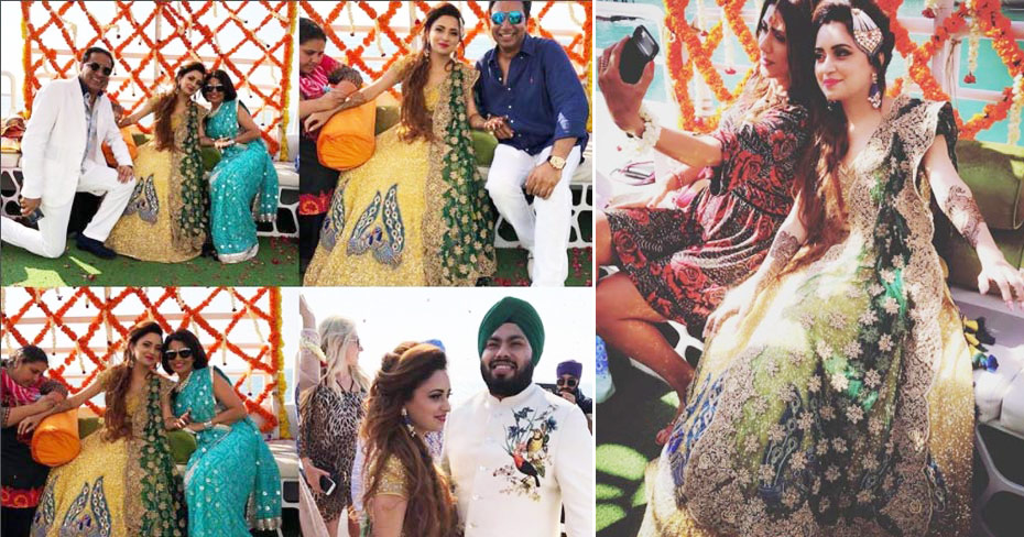To commence the festivities, the couple hosted an ardas at the Jebel Ali gurudwara. This spiritual meet was followed by lunch at Atmosphere on the 122nd floor of the Burj Khalifa. Japinder looked lovely in an aqua green Faraz Manan creation which she paired with stunning jewellery that starred Colombian emeralds.