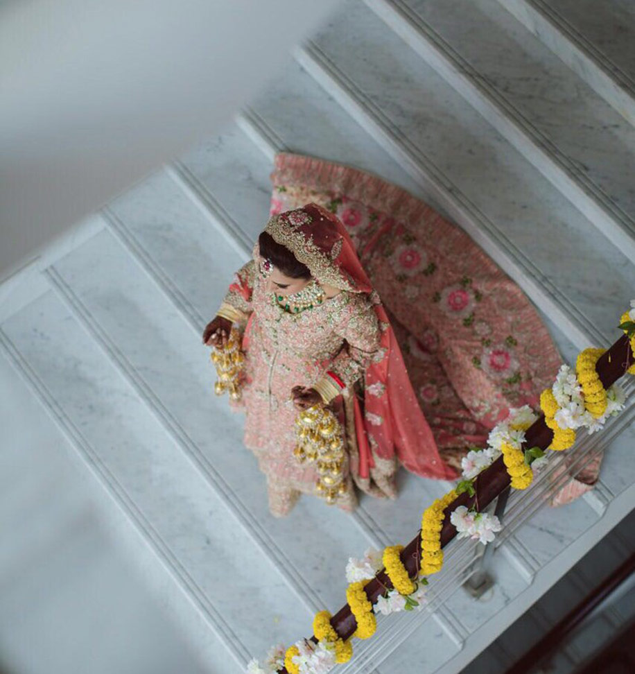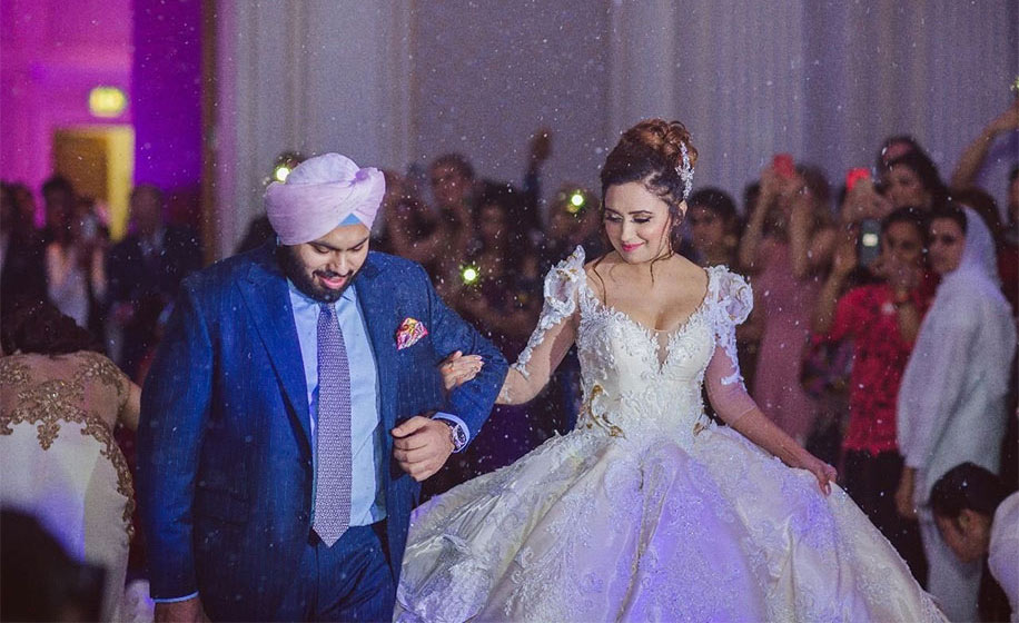 Japinder picked an outfit by Dar Sara High Fashion that showcased different shades of pink for the wedding ceremony. The dress weighed 30 kgs, had a five-meter train and featured designs inspired by baroque architecture.