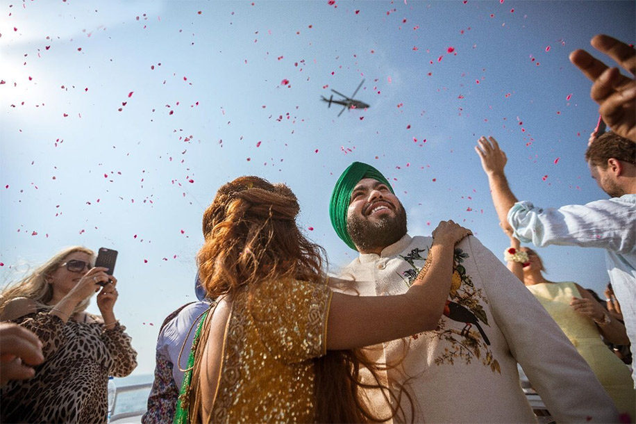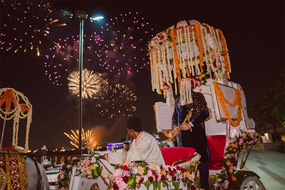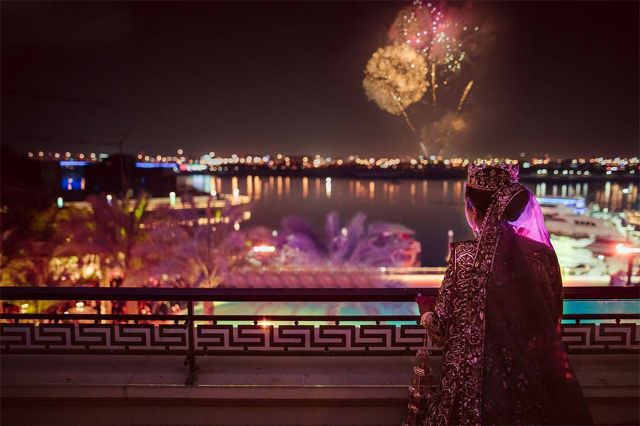When you have to pull off a wedding fit for royalty, the choice of venue is paramount. So the couple decided to host their wedding at not one, or two but three uber luxurious properties. The Palazzo Versace Dubai, the Burj Al Arab Jumeirah, and the Burj Khalifa welcomed their wedding guests and treated them to an extravagant hospitality. While the Burj Al Arab Jumeirah with its distinctive sail-shaped silhouette is a symbol of modern Dubai like the Burj Khalifa, Palazzo Versace Dubai is a Neoclassical masterpiece reminiscent of a 16th century Italian Palace complete with traces of Arabian architecture.