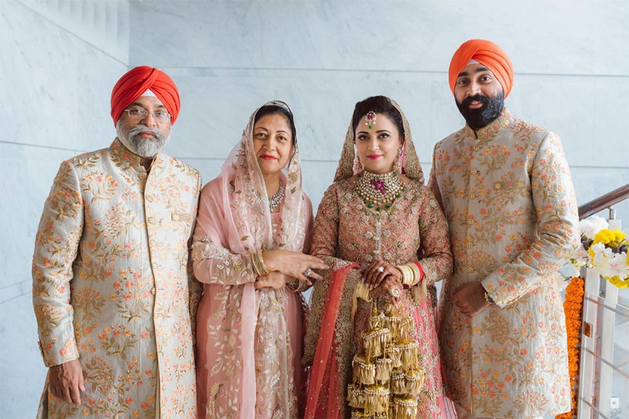 Bride’s Outfits: Rohit Bal (Mehndi and Roka), Dar Sara High Fashion (Wedding), Manish Malhotra (Reception and Roka)