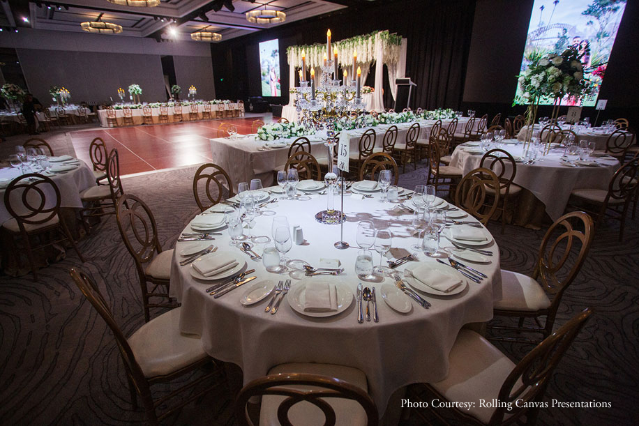 The festivities concluded with a lavish reception that featured a decor palette of black, white and gold interwoven with greenery. While the highlight was a surprise performance by the groom for the bride, the event was made memorable by heartwarming speeches by loved ones. An enchanting first dance on the hit number ‘Pal Pal Dil Ke Pass’ by the couple was a finale of the week. The bride wore a stunning white lehenga by Sabyasachi Mukherjee which she paired with Tyaani Jewellery, while the groom wore a classic black tuxedo. Guests were given little care packages as a thank you gesture for being part of the festivities.