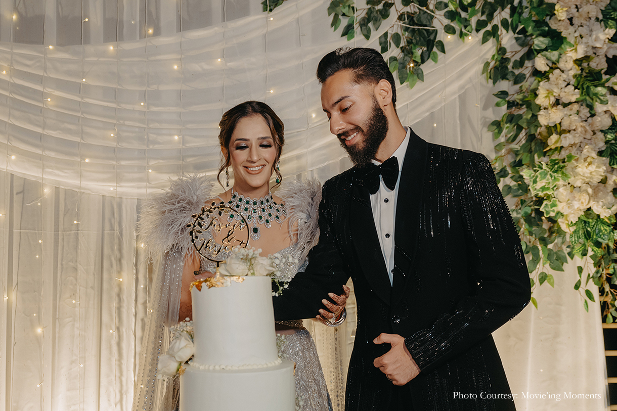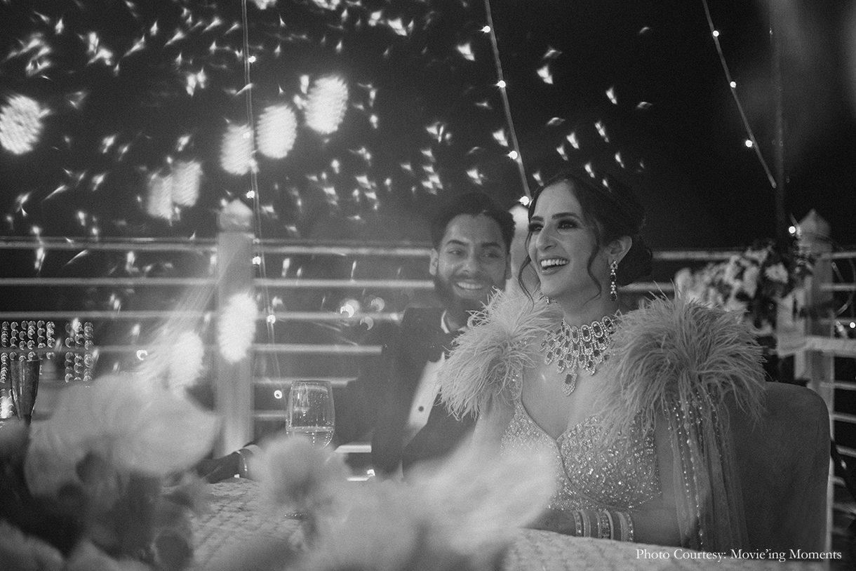 After embracing traditional elements in their previous events, the couple opted for a contemporary reception. Karan shares, “The Reception, in contrast, was envisioned to be very modern and quintessentially English. Elegance took centre stage with the couple cutting a cake and waltzing for the first time as newlyweds. Following this was the after party which was highly energetic. No timelines or rules were followed here – everyone just let their hair down!”