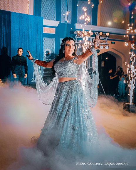 Bride’s Outfits: Preeti S Kapoor (Mehndi), Kehiaa by Kashmiraa (Engagement), Dolly J (Sangeet), Shyamal and Bhumika (Wedding), Val Taguba (Reception)