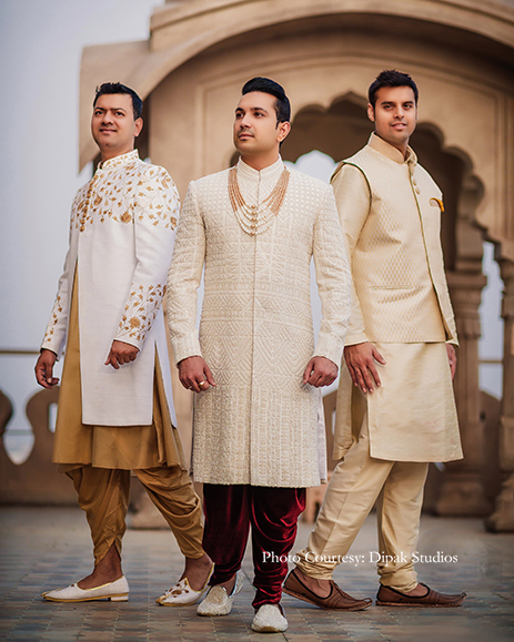 Groom’s Outfits: Prima Czar (Mehndi, Sangeet, Wedding), Shantanu and Nikhil (Reception)