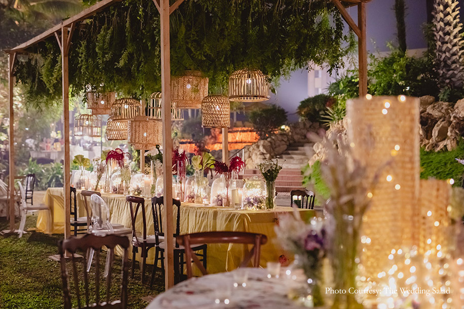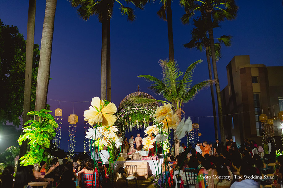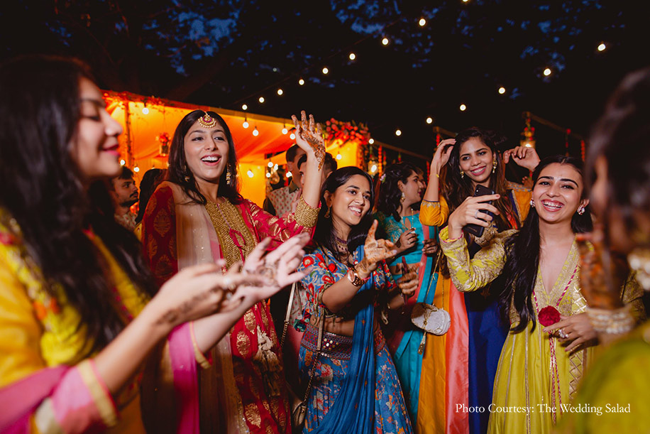 “This was hands down one of the most special events of the wedding for me. With Ankit Batra crooning enthralling melodies on stage, the event had a distinct Sufi vibe to it. Being a sundowner mehndi, everyone also shook a leg on the dance floor. My Dad and I also joined in and danced to a nostalgic Bollywood track which left both of us very emotional. Additionally, Rahul executed a surprise performance with my bridesmaids which left everyone in high spirits!”, shares the bride.