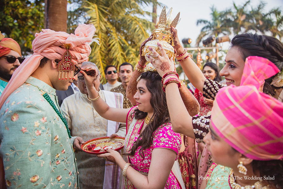 Surrounded by their loved ones and the salty Arabian Sea breeze, Jinal and Rahul’s wedding hosted at the plush Taj Lands End, Mumbai exuded contemporary grandeur and was a perfect expression of their vivacious personalities. Photographed by WeddingSutra Favorite – The Wedding Salad who made every shot count with their superior expertise, each moment of these magnificent nuptials was a treat for the senses.