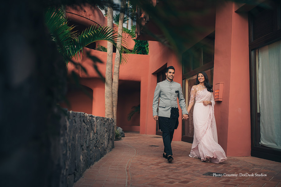 Jiten and Romina pulled off a lavish Indian wedding in the beautiful environs of The Ritz Carlton, Abama, in Spain which overlooks the turquoise waters of the Atlantic Ocean. Check out the stunning pictures of the celebrations by WeddingSutra Favorite – DotDusk Studios and other details shared by bride Romina.