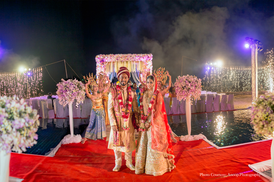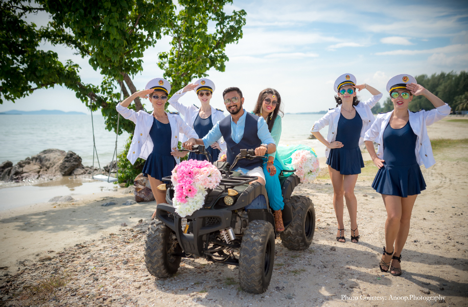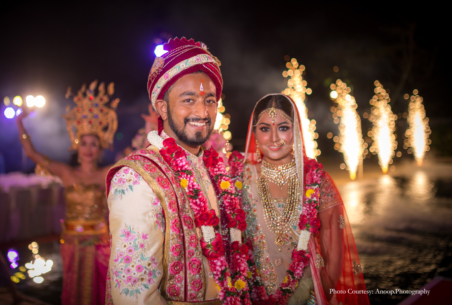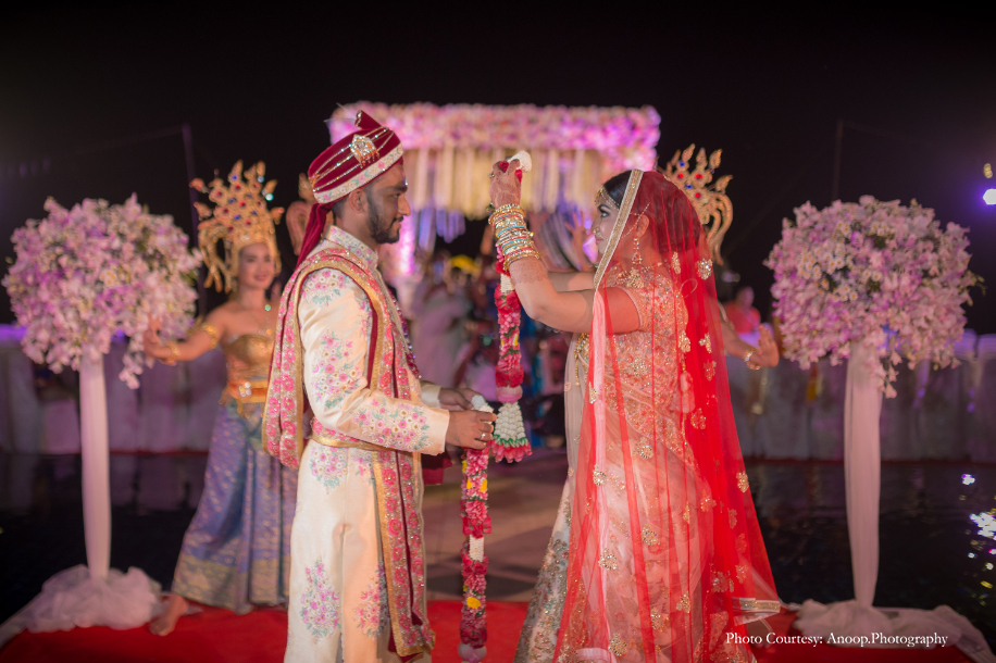 Juhi and Saket’s sweet love story eventually led to a grand wedding. A range of colors, themes, and exquisite floral arrangements festooned the occasion with elegance and energy. Here, the couple shares highlights of their lavish nuptials that took place at Rayong Marriott Resort and Spa in Thailand and moments captured by WeddingSutra Favorite Anoop.Photography.