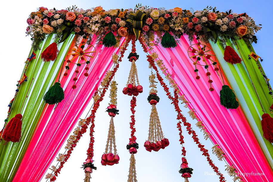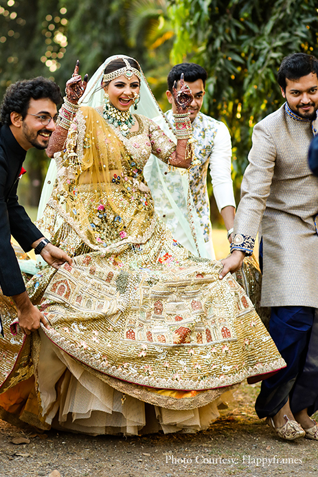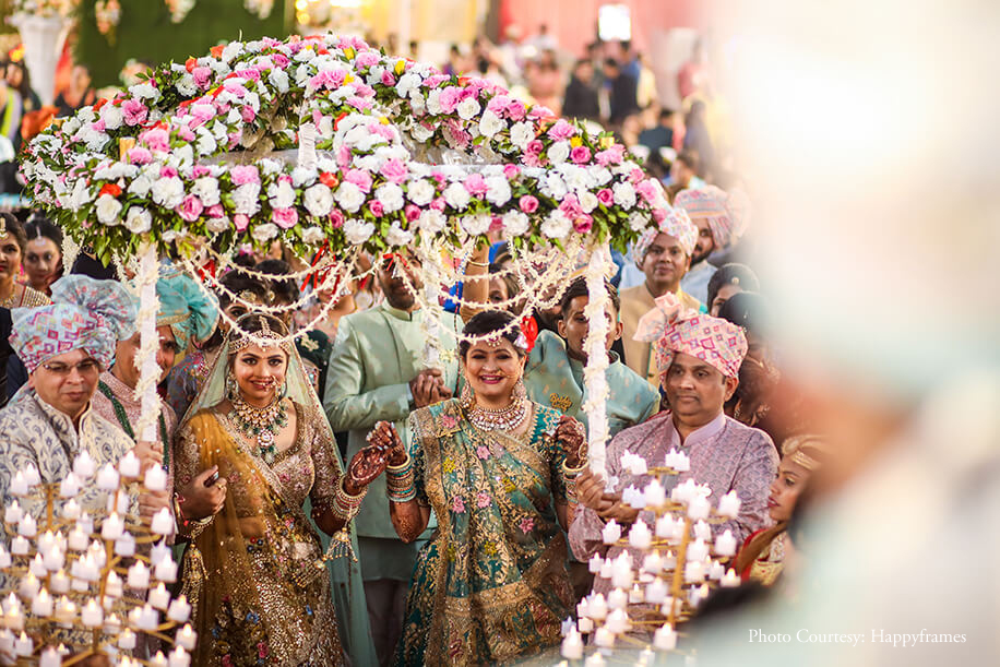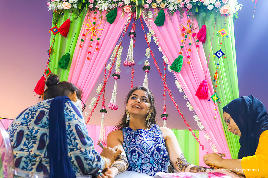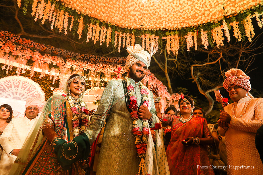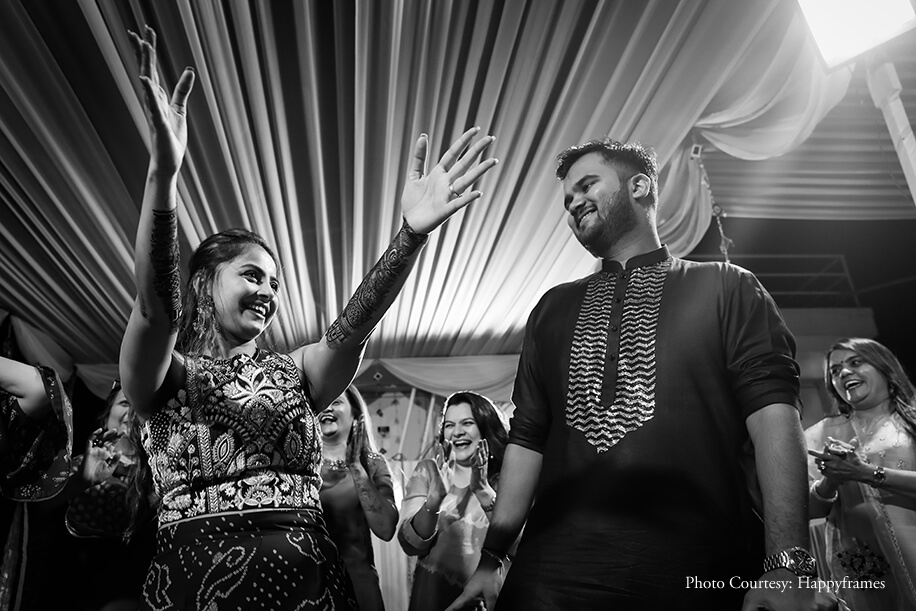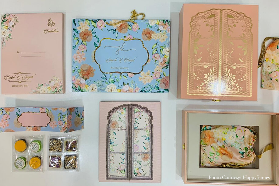 “We entrusted Happyframes with capturing our moments, and it turned out to be one of our best decisions. We loved their friendly interaction and cooperation with us and our family, and we looked our very best in the photos. The team of Zest Events planned and conceptualized our wedding. The invites by The Card Studio blended mine and Jayesh’s vision beautifully to create gorgeous floral invites that were sent with boxes and small potlis with chocolates”.