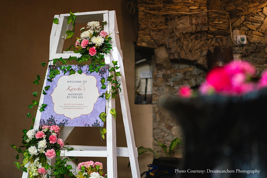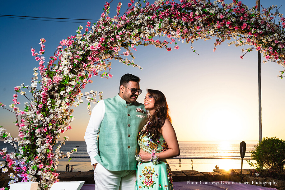 Following a ‘boho-chic’ theme with pastel decor, the mehndi was a glorious sundowner event. “We chose simple decor with pastel hues and had multiple cabanas with pink and sea green elements. The cherry blossom arch overlooking the sea was perfect for taking sunset pictures. Sticking to the sundowner theme, the drinks were free-flowing, and my bridesmaids looked beautiful in flowing pastel skirts. However, the highlight of the evening was the live Maggi counter which everyone flocked to! The guests had fun relishing Maggi by the sea, getting henna patterns applied on their hands, and dancing to Bollywood hits!”
