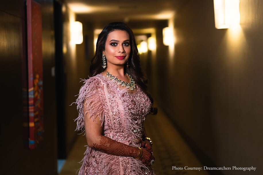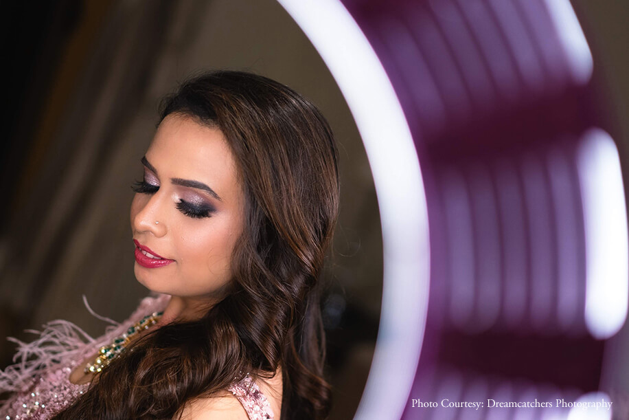 Amping up the glamour stakes, the reception was a glitzy intimate event. The bride shares, “We chose to have a floating reception where we could easily mingle with all our guests. A small stage was set up where our families could meet and greet people, along with a photo booth where everyone could get family pictures clicked.”