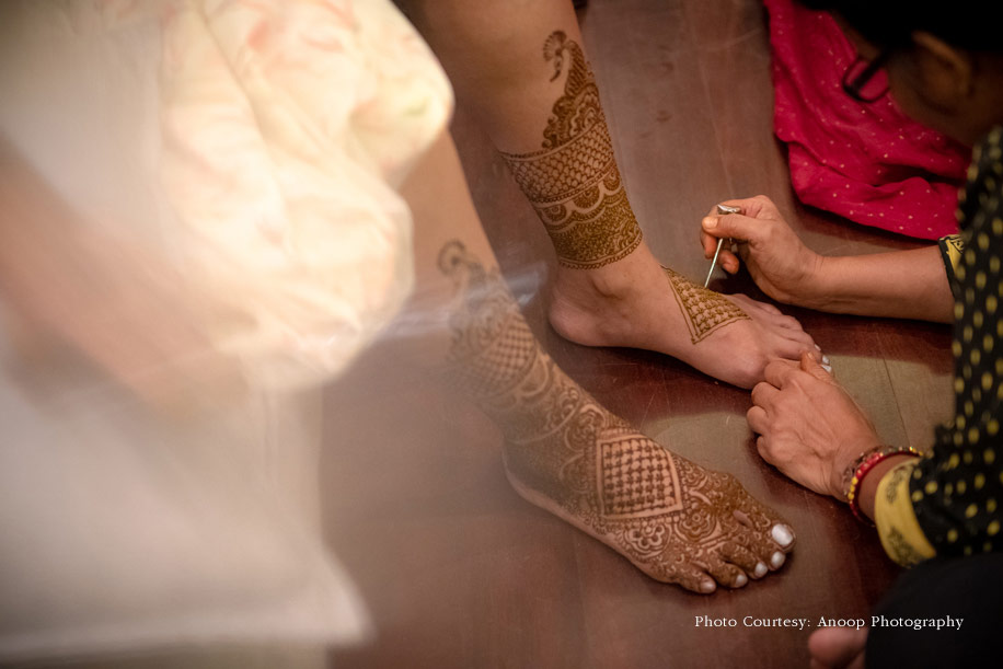 “Our wedding festivities began with the mehndi. It was a small function with only some of our closest family in attendance. I wore a beautiful beige outfit with a pair of chandbalis.”