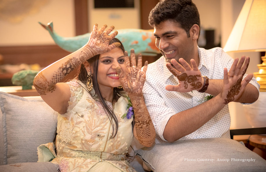 “We were in the same school and pre-school but, a batch apart, we never spoke to each other. Years later, however, we met when our families were looking for partners for us. We clicked instantly and were constantly in touch on the phone since he lived in Dubai and I was in Delhi. Before long, we knew we had found our perfect match.”