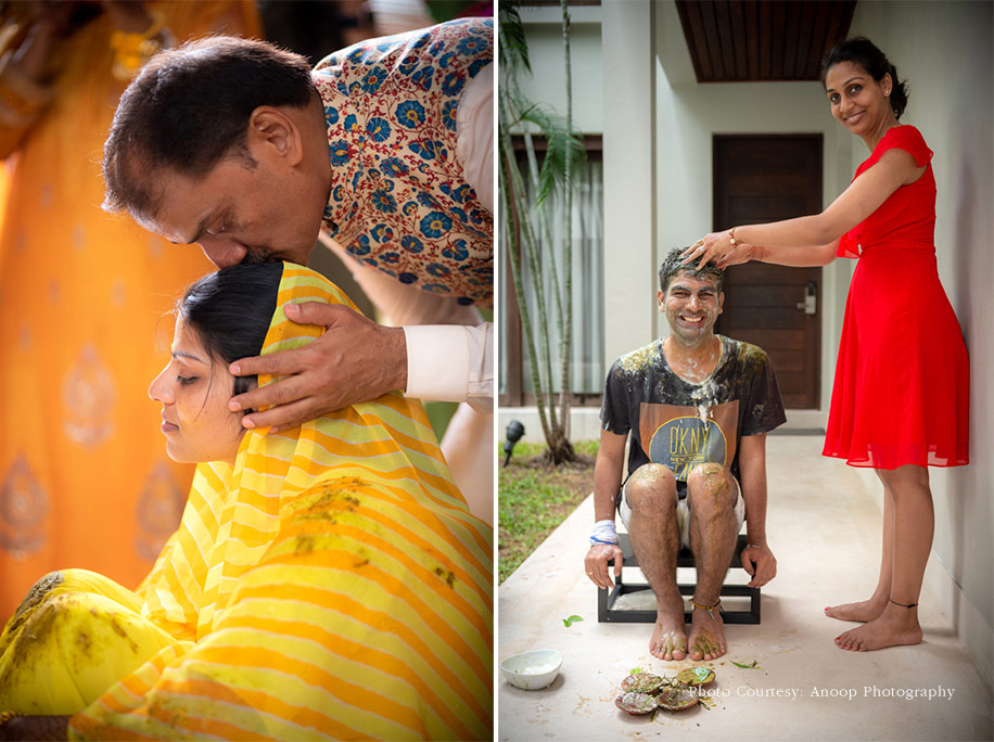 “This was a very intimate affair and the ceremonies for Abhinav and I took place at our respective villas. There was no particular theme for this function but the color yellow did feature in most of the decor and was even the dress code.”
