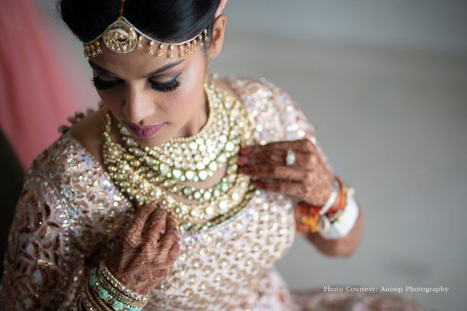 Bride’s Outfits: Abu Jani Sandeep Khosla (Mehndi and Pool Party), Anamika Khanna (Engagement) Manish Malhotra (Wedding)