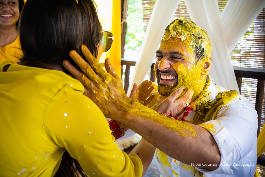 The second day commenced with the haldi ceremony for the groom, and the chooda ceremony for the bride. The auspicious functions were held in venues decorated with vibrant drapes and yellow blooms. The celebrations were followed by a sumptuous vegetarian lunch prepared specifically by the head chef of The Palayana Hua Hin for the occasion.