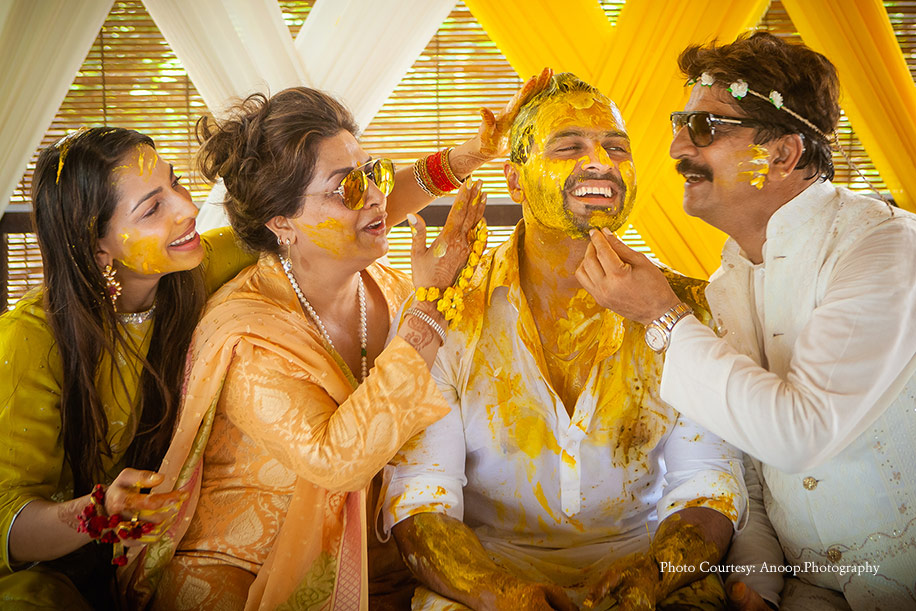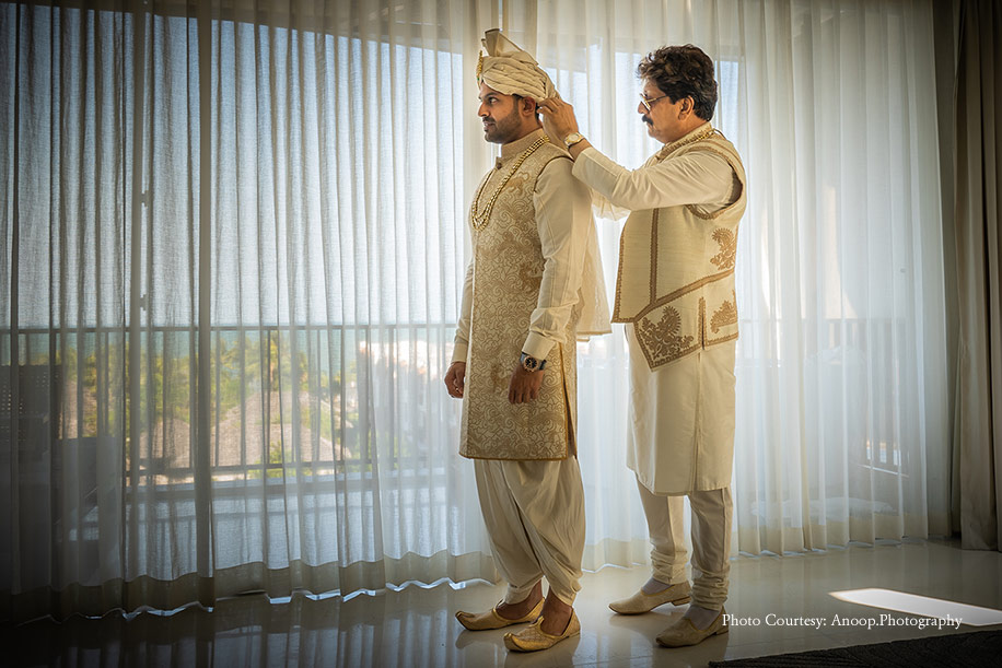 Groom’s Outfits: Diwan Saheb (Welcome Lunch, Reception), Rohit Gandhi and Rahul Khanna (Cocktail and Engagement), Tarun Tahiliani (Wedding)