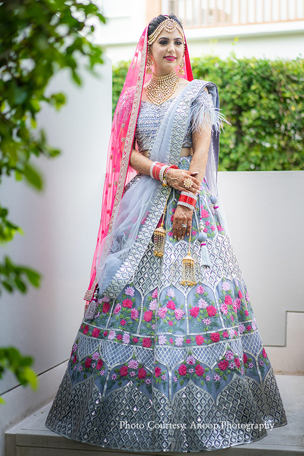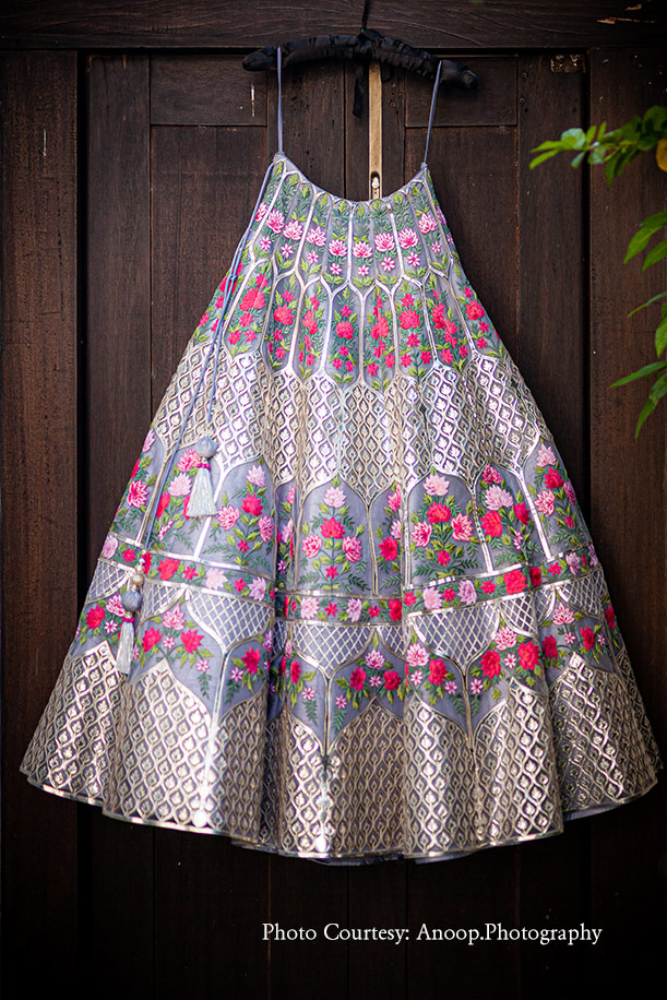 Bride’s Outfits: Frontier Raas (Welcome Lunch, Wedding, Reception), Monisha Jaisingh (Cocktail and Engagement)
