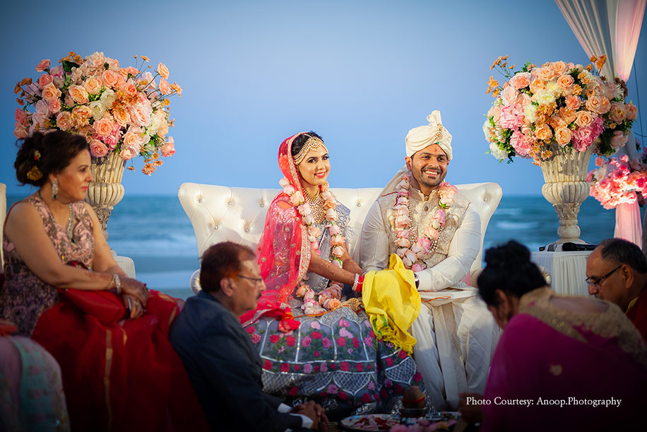 Kanika and Varun's beach wedding was a charming and cozy affair attended by just close family and friends.