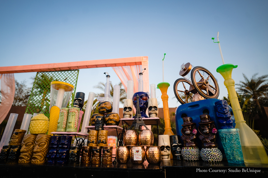 “The ceremonies began with a Gruh Shanti and the mehndi. The Gruh Shanti had a Rajasthani theme. We only had very close friends and family in attendance. The mehndi had Arabic influences with hookahs, dancers, an Arabic DJ and Middle-Eastern cuisine. It was a big hit.”