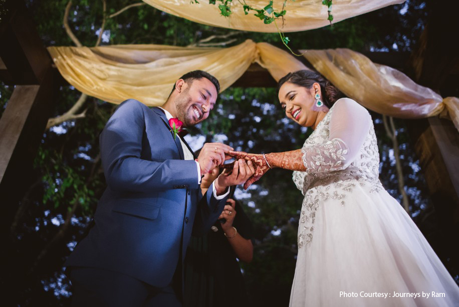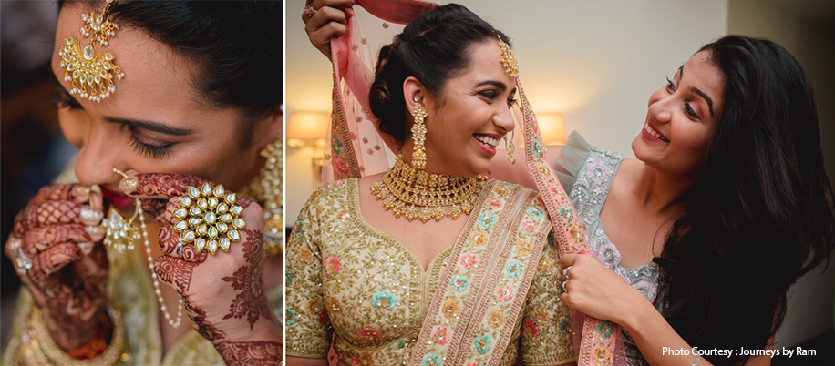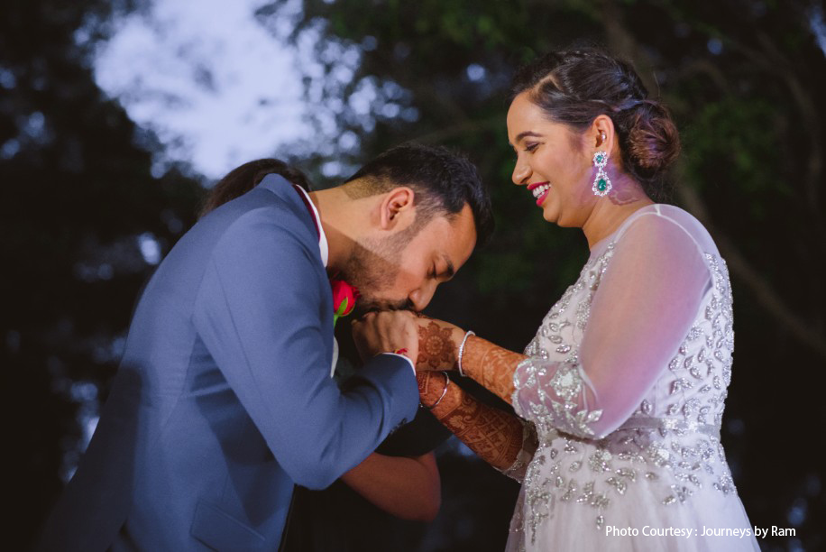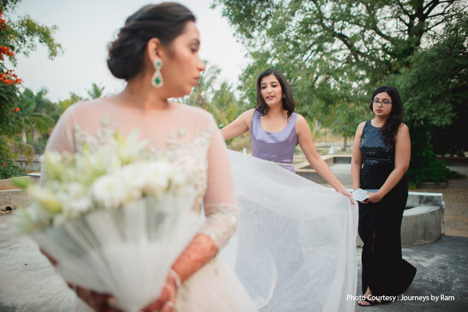 “I could not find a wedding photographer for the longest time. Then one day I chanced upon the work of Ram from Journeys by Ram. I have a personal interest in photography which helps me understand the art well and Ram’s work was really impressive. When we spoke for the first time, our conversation went on for two hours straight! Our ideas matched and I was relieved to have found him. He too, was super excited about shooting our wedding because he loved the concept of our nuptials. We had a different videographer, so I was concerned about both of them clashing while working but to my delight, they had built a good rapport too. Ram is brilliant – he would sit and conceptualize some shots beforehand, would come to us tell us that the frame is set, take us where he needed us to be and leave us in five minutes. A good photographer was one of my top priorities because once the functions are over these pictures are how we will always remember our wedding.”