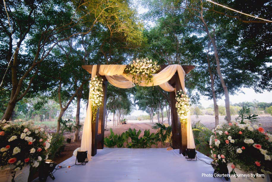 “We got married at Pragati Green Resorts which is 45 minutes away from Hyderabad. Why did we choose this location? The romantic answer would be that Hyderabad was the city where Anuj had proposed to me. But that’s hardly the real reason. The venue was beautiful and spacious. Plus, my uncle knew the owner, and we had family in Hyderabad too which helped. This property has 2,500 acres of land and about five lakh trees. The resort is managed by good people, and the hospitality was great. They were welcoming about new ideas which worked very well for me because I was very adamant about the way I wanted my wedding. Another thing that was great about this place was that despite having so many plants and trees on the property, there were no mosquitoes since they had also planted plants that repelled them.”