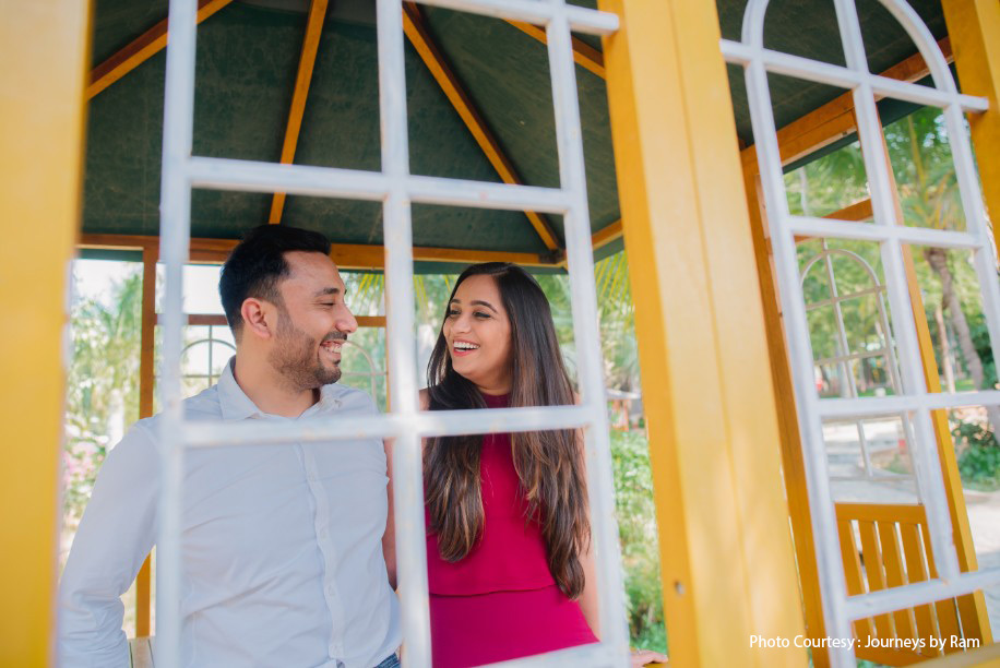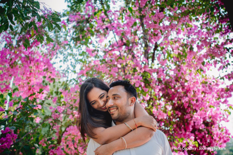 “We first met at the SP Jain Global campus where we had both enrolled for our MBA course. We bumped into each other in the lift when Anuj was just moving in with all his luggage, and I was going downstairs for registrations. I knew I felt something for him the minute I saw him. He said “Hi”, and I started blabbering about the registration and the campus while he was struggling to get all his stuff out of the lift. He says that he was stunned, but at the same time, he found me cute. Nothing happened until the end of the first term. Anuj says that he tried to get my attention the whole time, but it was only we met through a common friend did we get to know each other better. We clicked so well – both of us love traveling, have the same mindset about religion and share the same ideologies. Everything just fell into place. After we got back to India, we were in a long- distance relationship for two and a half years since he stayed in New Delhi while I lived in Mumbai. I wasn’t ready to move to New Delhi, so he left his city for me. That sealed the deal for me.”