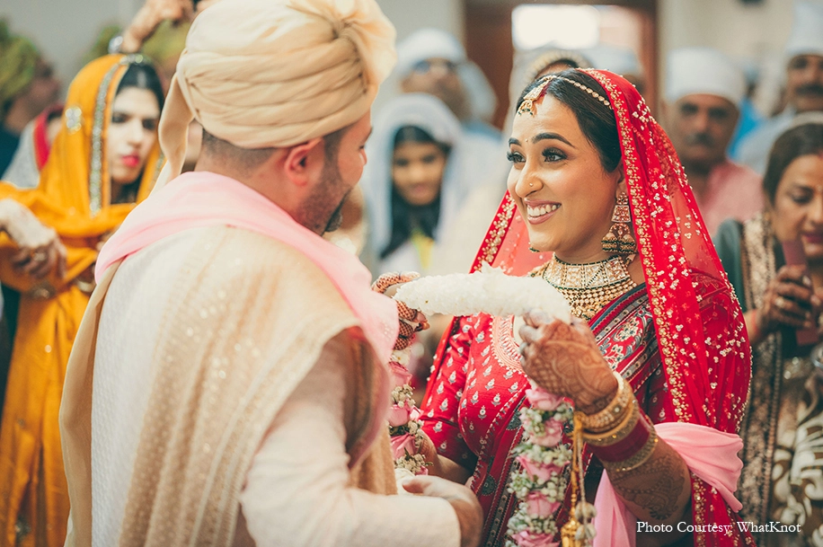 Serene and auspicious, the Anand Karaj was a close-knit ceremony. On the decor front, things were kept extremely simple with minimalistic decor highlighting the beauty of the Gurudwara. Looking beautiful in a red lehenga, Kavita was all smiles as she walked down the aisle to join Rahul who contrasted her in an off-white sherwani.