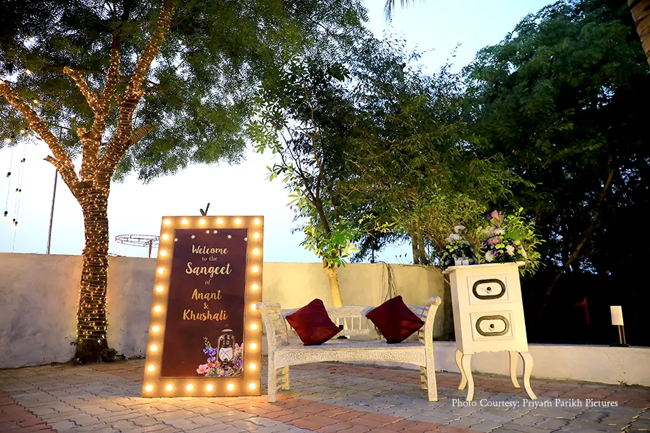 After a lot of convincing, the couple got their families on board with their relationship. Even though they knew they were getting married, Anant still surprised Khushali with a simple, yet memorable proposal on his mother’s birthday, which made it even more special for him. After a romantic dinner at one of their favorite restaurants on the outskirts of town, he went down on his knee and popped the question.