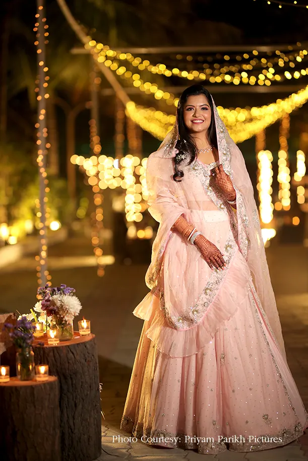 Bride’s Outfits: Vasansi Jaipur (Kankotri), Sahiba Arora (Bridal Mehendi), Siddhartha Bansal (Mehendi and Sangeet), Tussah by Siddhi Shah (Mandap Muhurat), The Indian Ombre by Khushboo (Haldi), Swati Ubroi (Natak and Garba), Diva’ni India (Wedding)