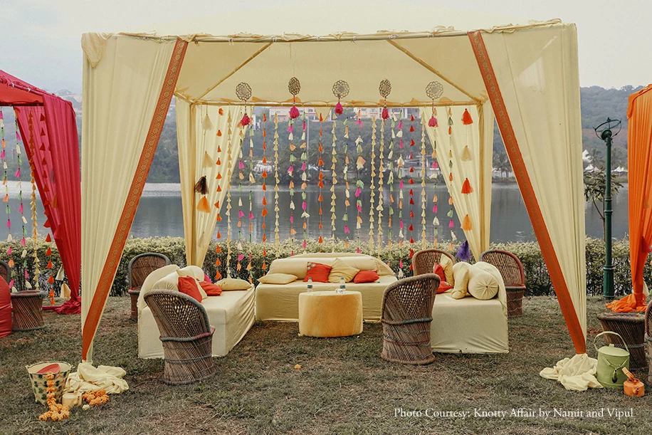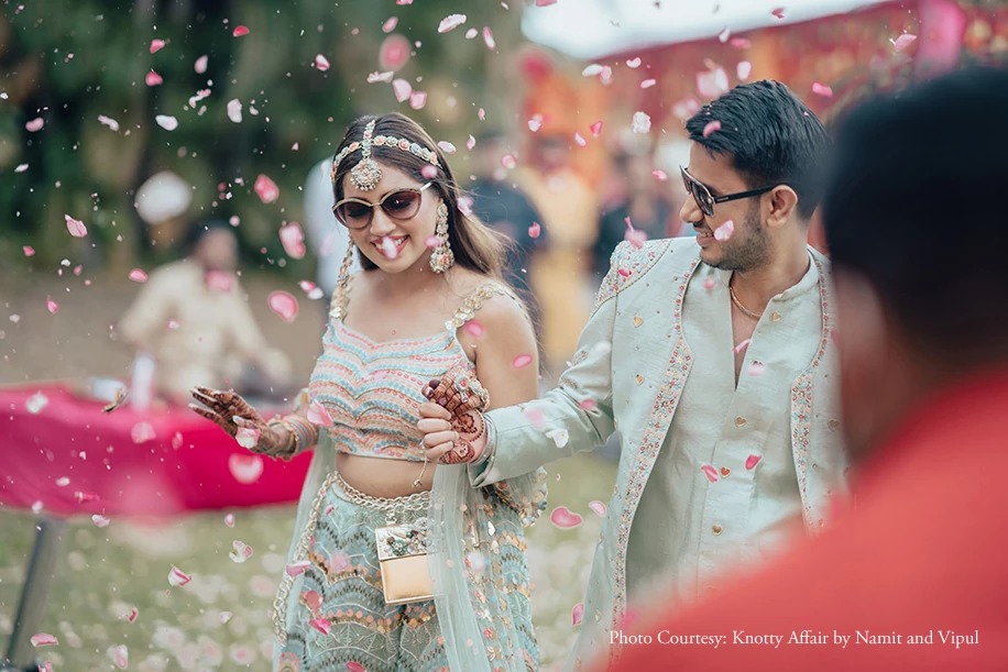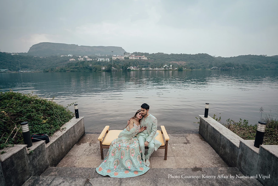 The Mumbai based couple chose the lush greenery and myriad unique locations of Aamby valley such as the auditorium, lake view gardens and Benaras Ghat, as a backdrop to their wedding festivities. Every moment of their celebrations over the course of their 7 functions were captured in breathtaking beauty by the talented team of Knotty Affair by Namit and Vipul. Talking about their experience the couple shares, “It was a pleasure working with their entire team. Throughout the wedding, they were superbly coordinated and professional while effortlessly blending in to capture the most beautiful shots.”