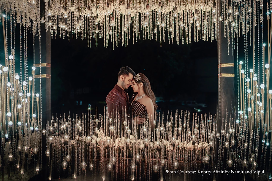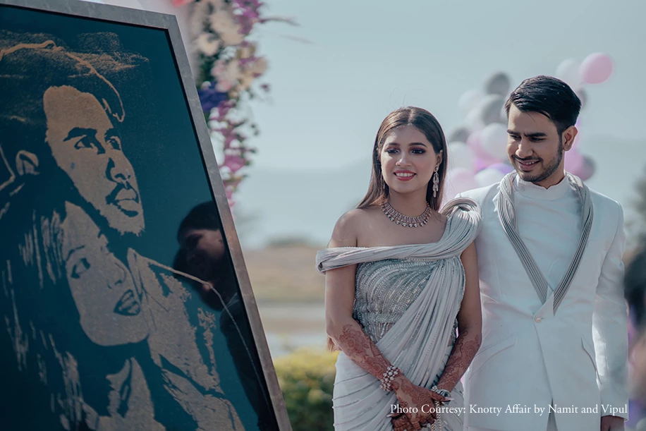 Introduced by a mutual friend, the couple felt a blooming attraction from the moment they met. Reminiscing about the kindling of their story, the groom shares, “Even though it sounds very clichéd, it truly was love at first sight for me. There was an undeniable connection from the very first meeting, which only grew with time, countless conversations and plenty of car rides. It was however when we started travelling together that we truly became soulmates. Through thick and thin, our bond only grew stronger, and before long, I knew I wanted to spend the rest of my life with her. One day while walking on the beach together, I confessed the depth of my feelings and asked her to be my wife”.