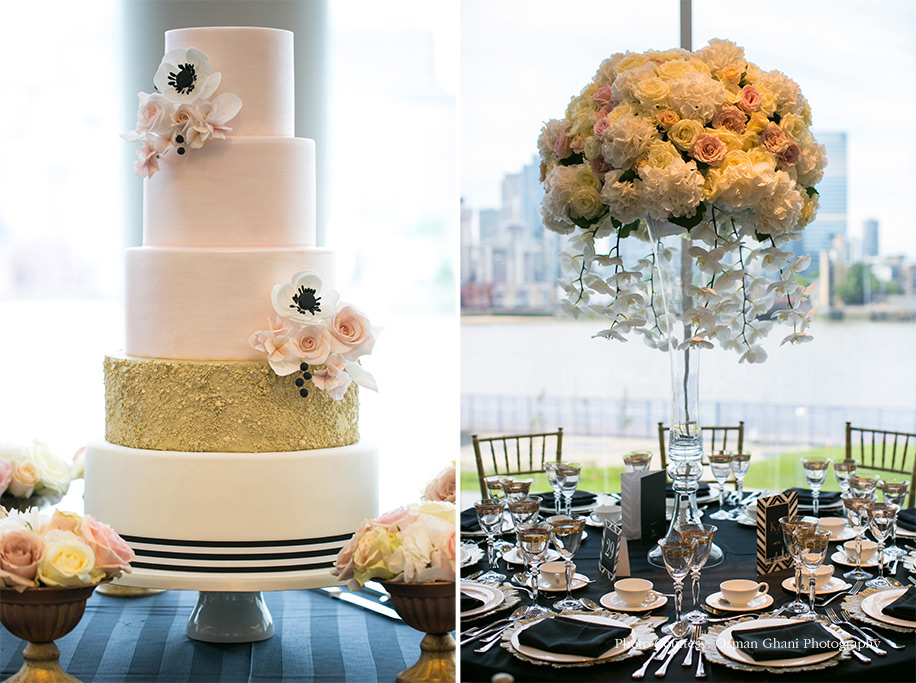 “Amore did a stunning black, white and gold city theme with hints of pink through the flowers to bring in some softness to the look. The decor complimented the contemporary, chic setting of the hotel. For the entertainment, we decided to keep it simple and had a saxophonist play as guests arrived into the drink reception. It was subtle and worked perfectly with the theme. During the party we, of course, had dhol players – after all, every Punjabi wedding would be incomplete without dhol! My sister Anisha, who couldn’t manage to steal Amar’s shoes in the gurudwara, found an opportunity when he took them off in the hotel room! He had to do 3 dares over the course of the night and pay up and only then did he get his shoes back. No wonder we took so long to arrive at the reception party!”
