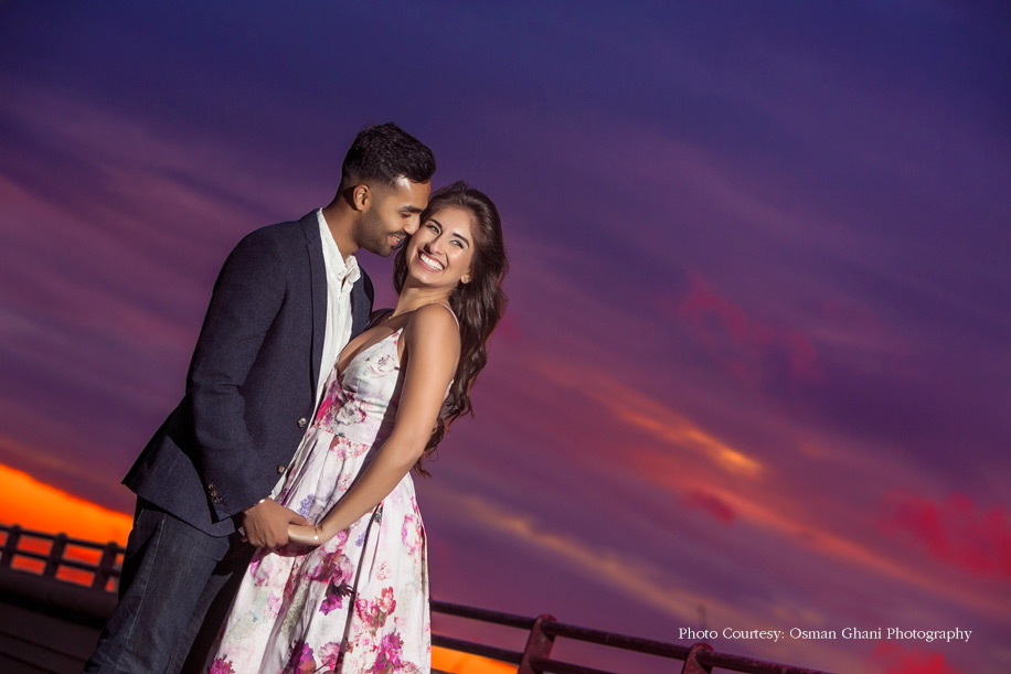 “We went to Croatia in the summer of 2016. One evening Amar booked a restaurant in the mountains on the island of Brac. We drove up in a rented convertible VW 1994. As Amar tried to nervously propose, I was too busy frantically trying to avoid the many wasps. After what was otherwise a romantic dinner, we went for a walk in the olive gardens and stopped by a wall where the view of the sunset over the mountains was truly breathtaking. He finally got his chance to propose and I couldn’t have been happier!”
