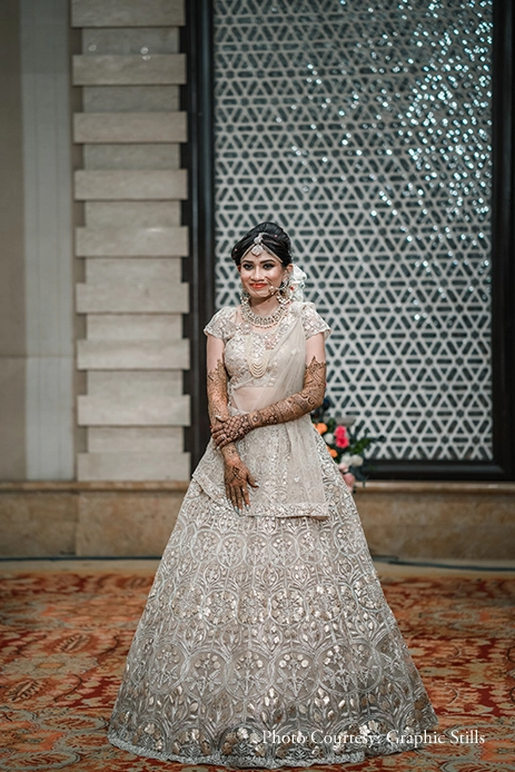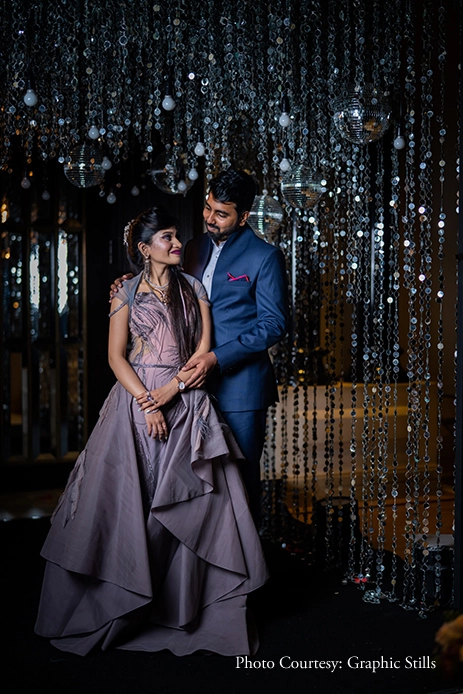 The happy bride shares, “Honestly, we hadn’t planned much for this event. But my mom and I had decided that I should don a glittering gown along with diamond jewelry for this ceremony. On the decor front, we kept it minimalistic with bouquets and serial lights.”