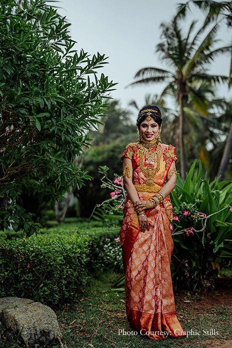 Sporting posh hotels and stunning resorts, Kirithika and Ajaiy’s venue list was comprehensive and added a healthy dash of luxury to their union. Hosted at the elegant and spacious Taj Coromandel in Chennai, the poochodal ceremony helmed the celebrations while the Taj Fisherman’s Cove Resort & Spa, Chennai gave the couple’s post-wedding photoshoot a perfect serene backdrop with its swaying palm trees and uninterrupted views of the coast. Other venues on the list included Annai Resorts & Spa, ITC Grand Chola Hotel, Sheraton Grand Chennai Resort & Spa, The Leela Palace Chennai, and Ganga Grandeur in Nagercoil.