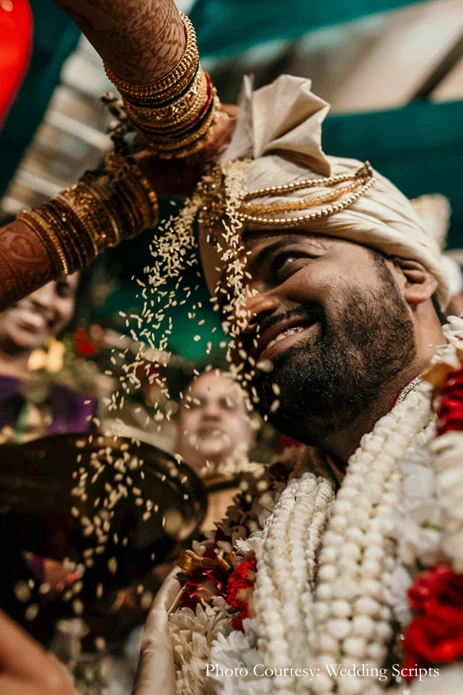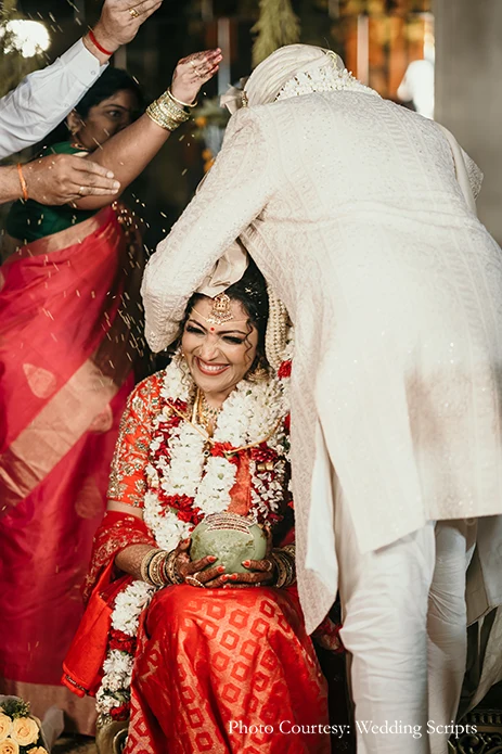 Brimming with joy, emotions, and rousing celebrations, Kirti Shetty and Nityananda’s wedding, planned to perfection by WeddingSutra Favorite – Crimson and Cherry, painted a riveting picture of love at the Four Seasons Hotel Bengaluru.