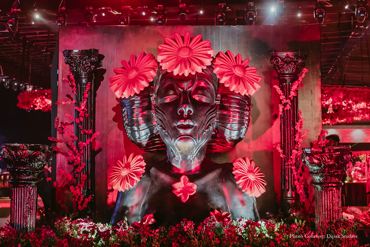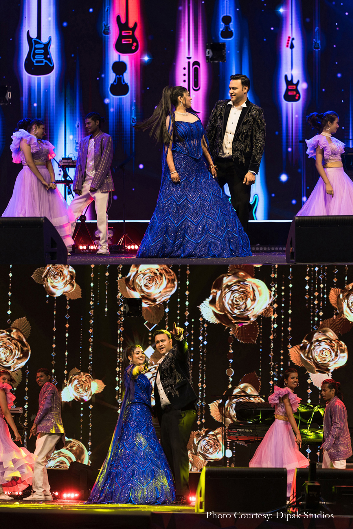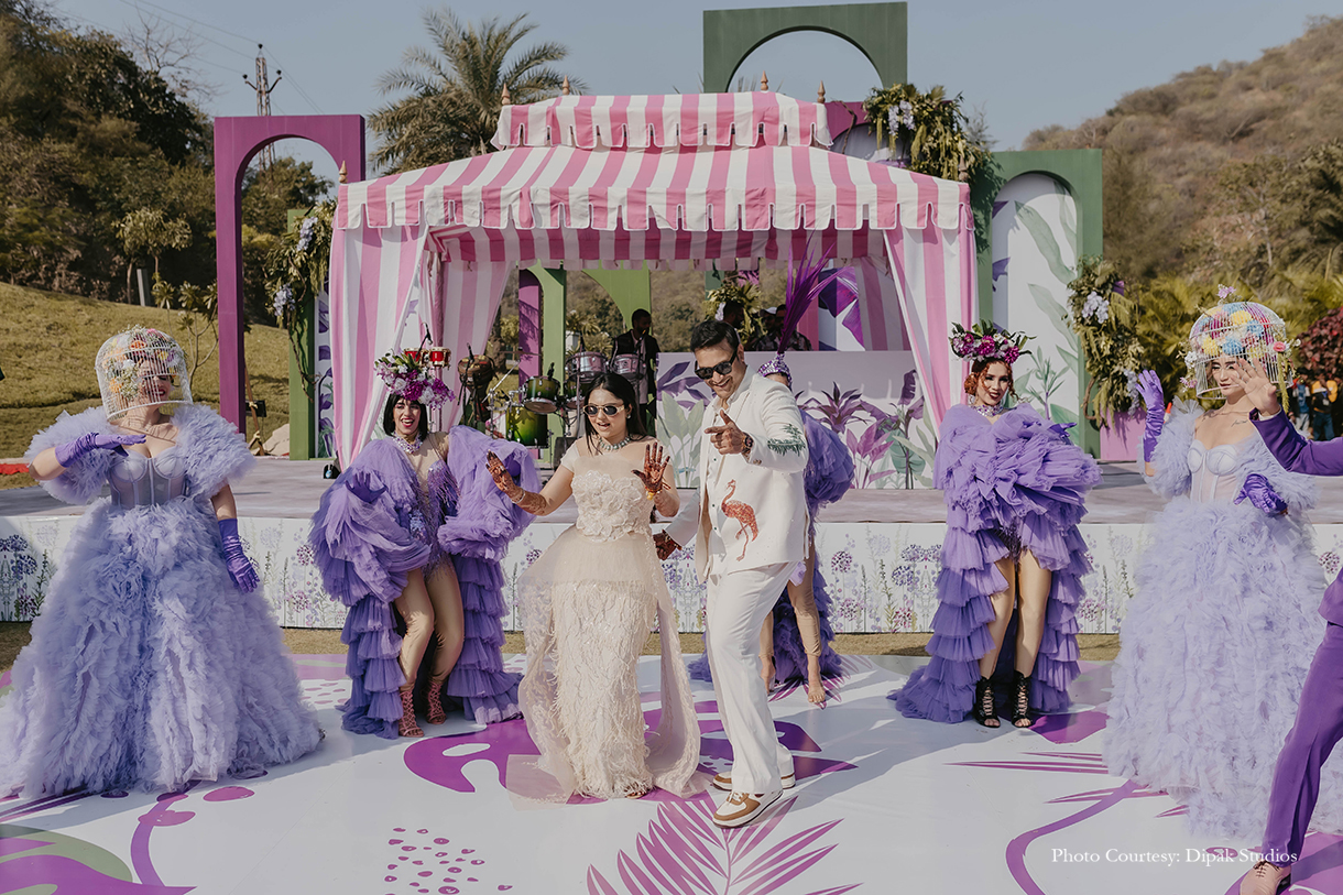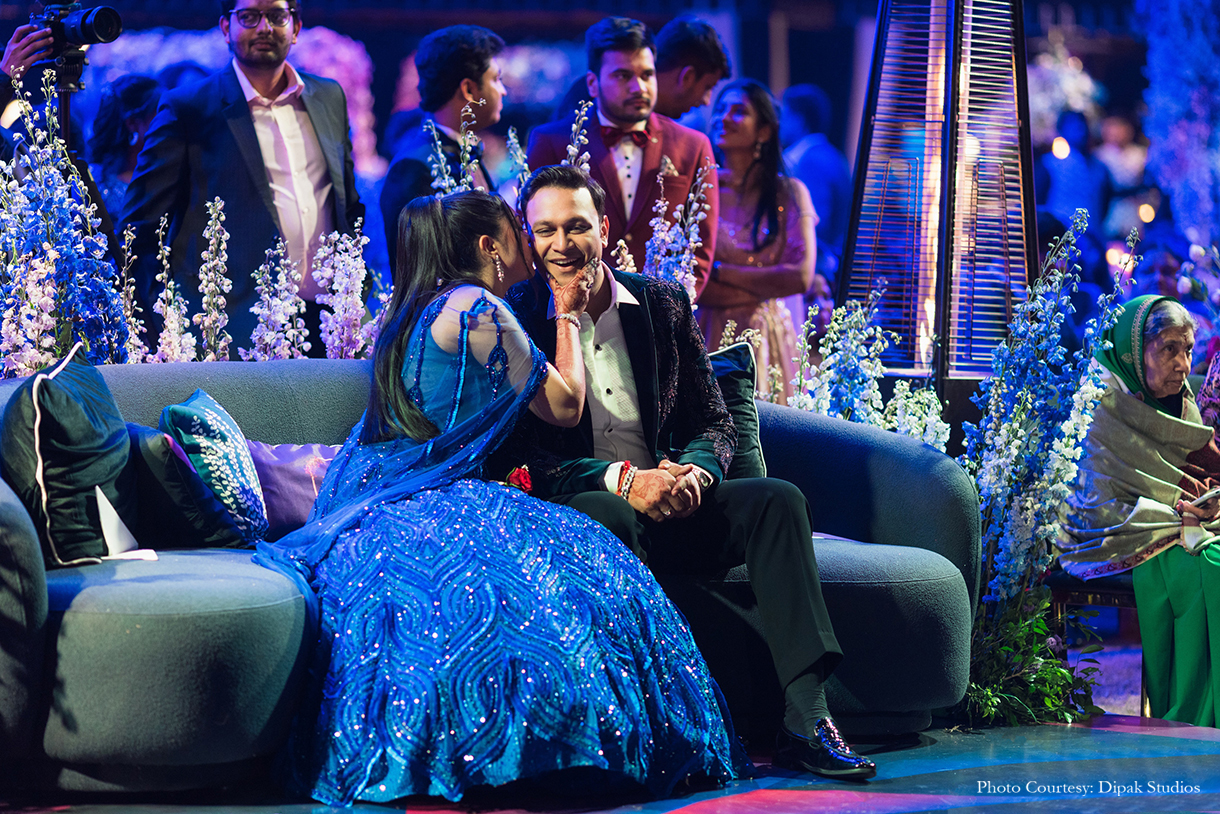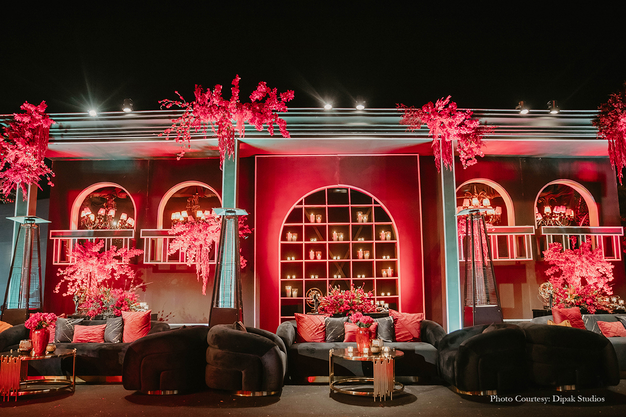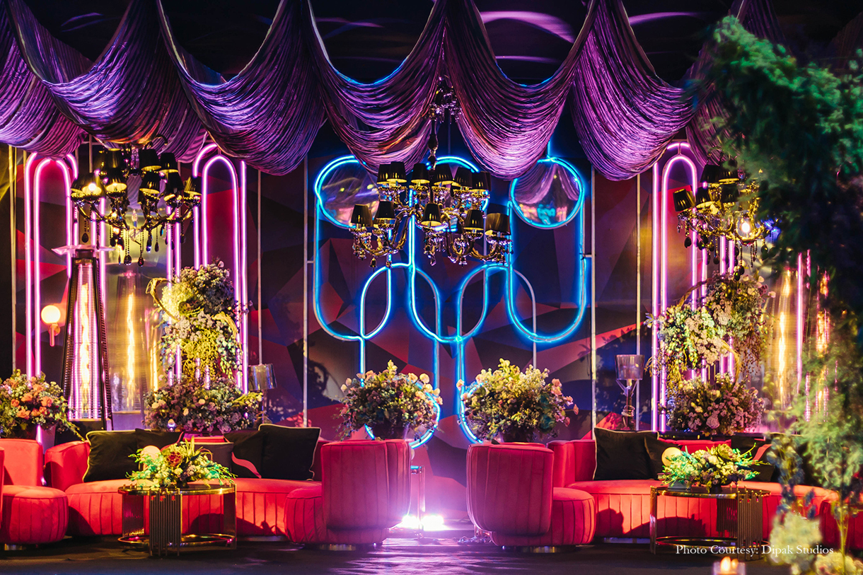 Filled to the brim with glitz and glam, the sangeet had everyone putting their best foot forward in the dance and style department. The couple shares, “The event was electric and trippy. From the moment they entered the venue, everyone was in the mood to party. The vibes were perfect the decor that used a plethora of unique lights and sleek design elements. and the decor gave absolute justice to it.”