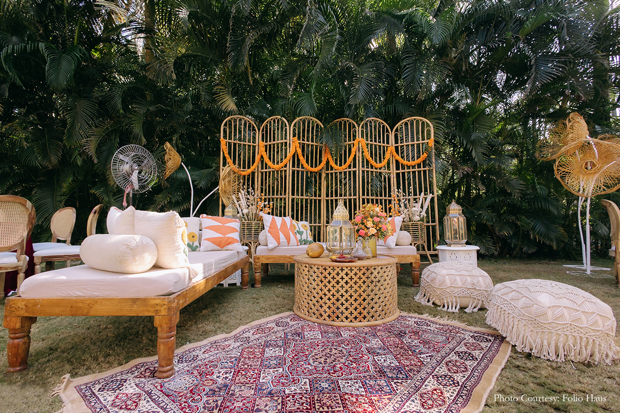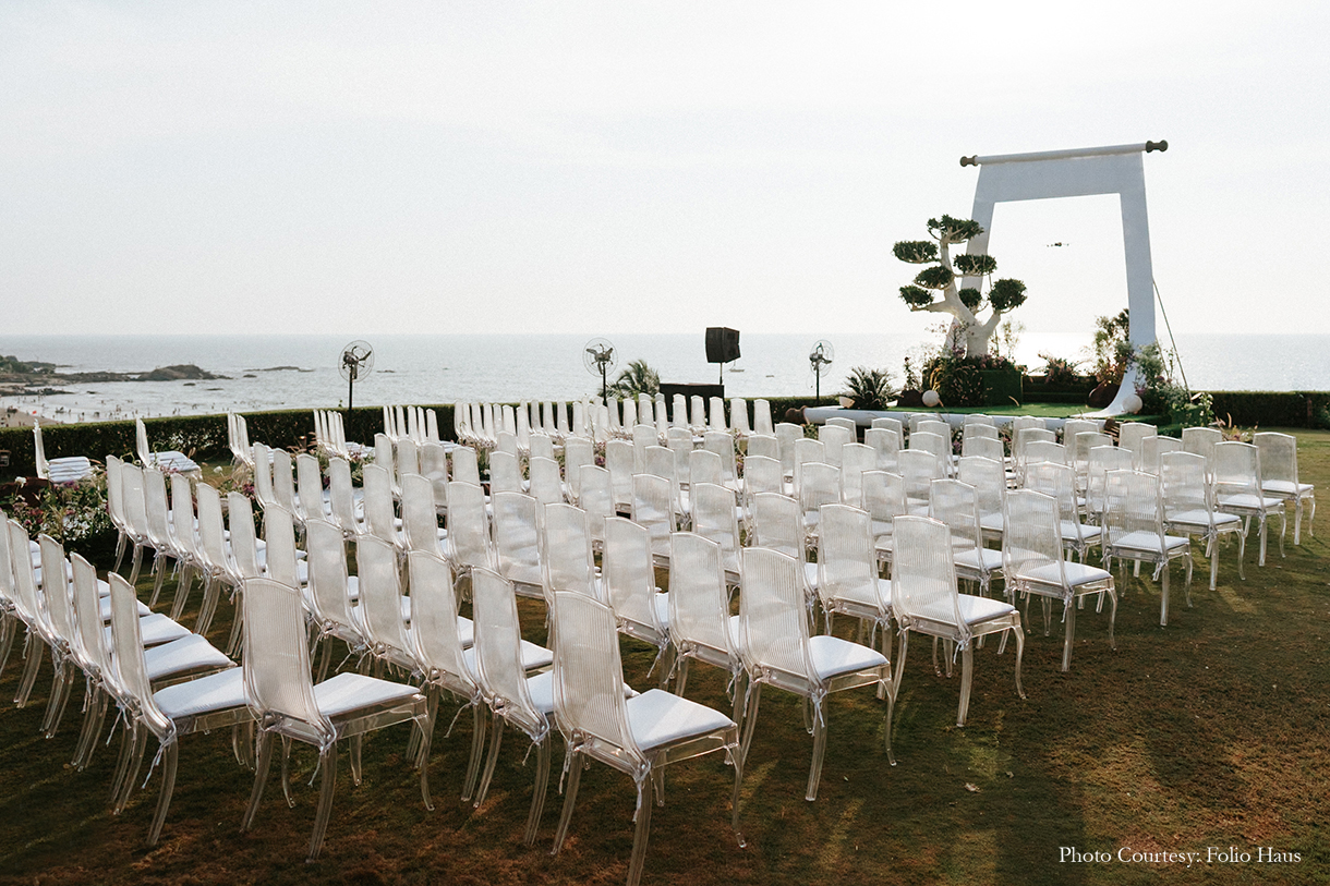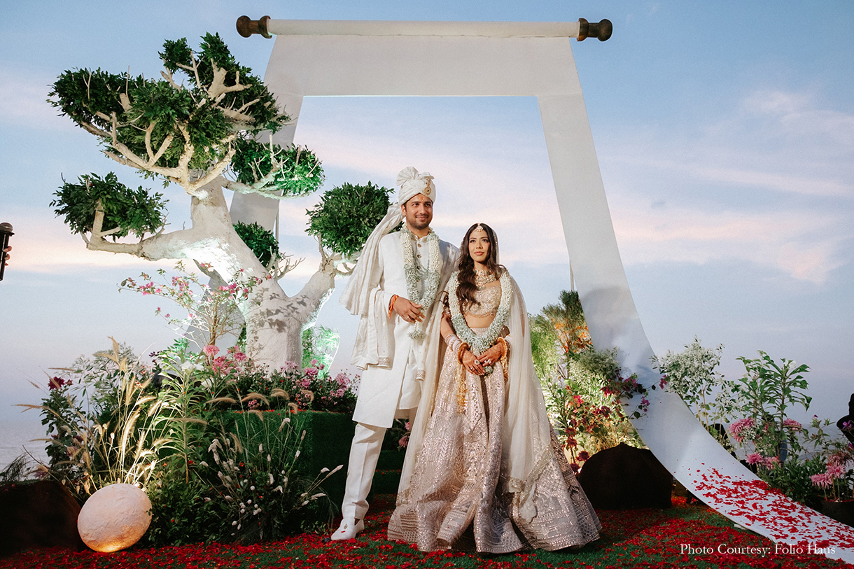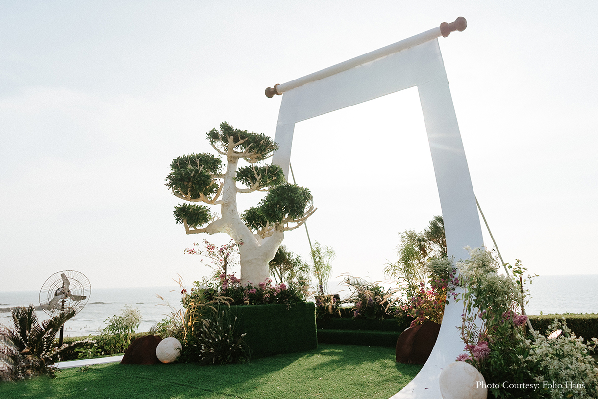 This couple’s unconventional seaside mandap design is a stunning example of nature meeting contemporary design concepts.
