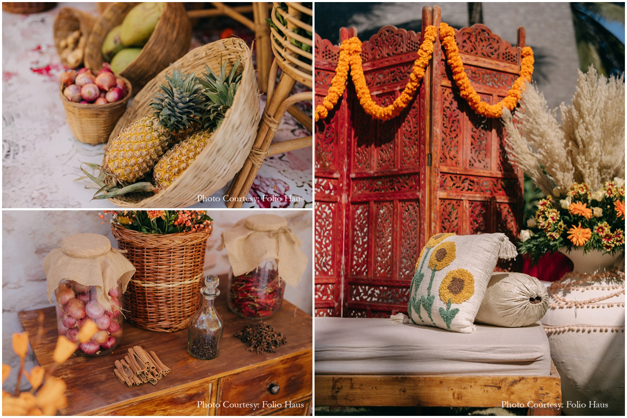 Devanshi from Shreem Events shares, “The bride, Komal is very creative. Collaborating with her was such a pleasure. Komal was involved in every part of the wedding, from decor to collaterals. The gifts were also designed by the bride’s company. Since we had a bride who was so creatively skewed, everything just had to be perfect and we were on our toes throughout the celebrations. The celebrations in Goa were hosted in the first week of December. Apart from the primary property, multiple hotels around the vicinity were also used to host guests and wedding vendors.”
