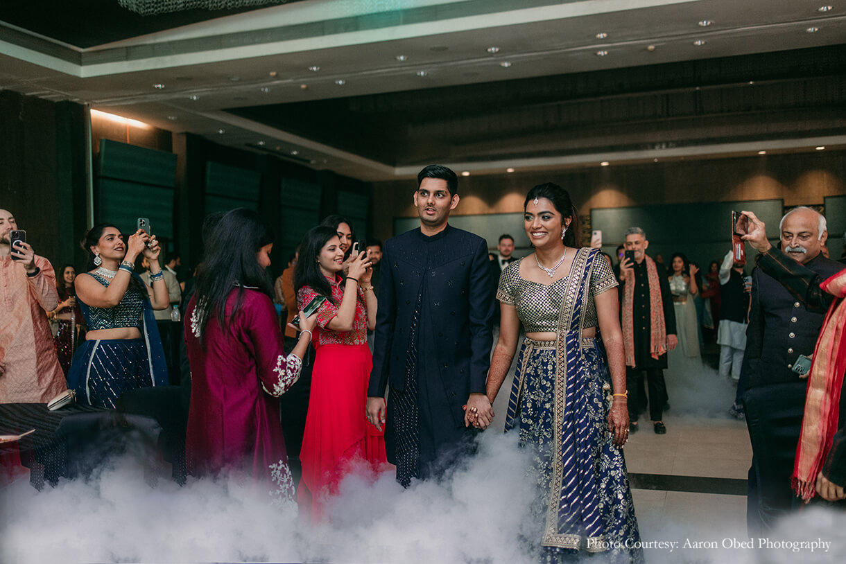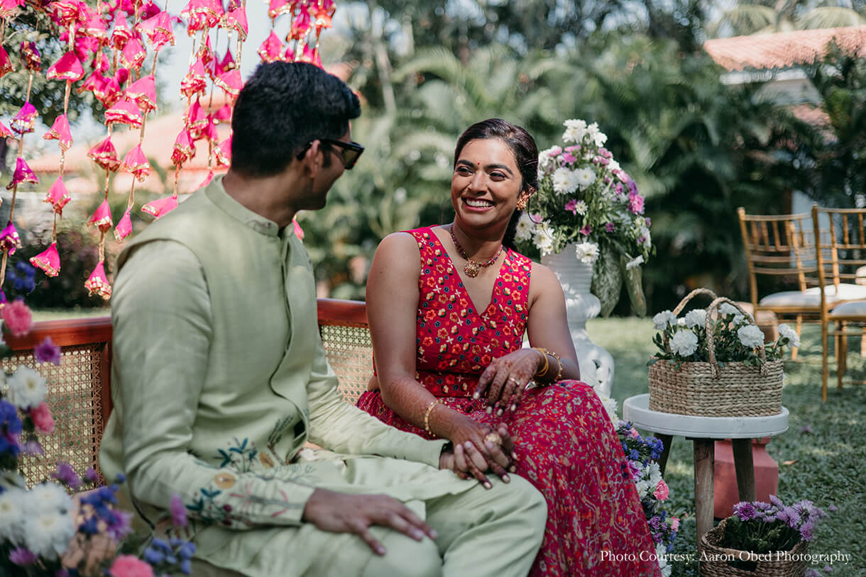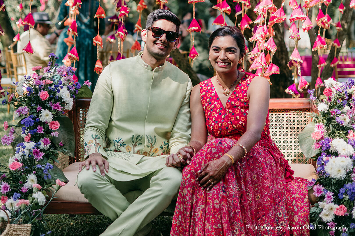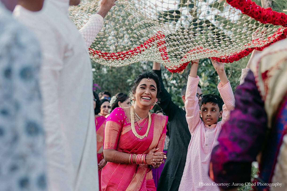 Bride’s Outfits: Saundh (Mehndi) Taneira (Oonjal), Kanakavalli (Wedding), Urban Monkey (After Party)